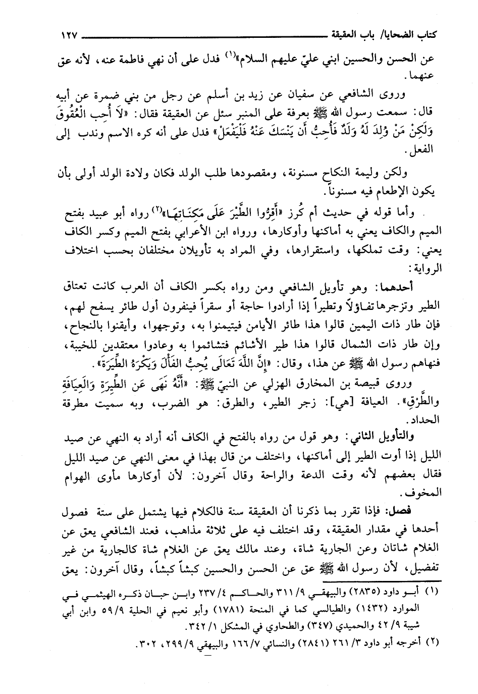 عَنِ الْحَسَنِ وَالْحُسَيْنِ ابْنَيْ عَلِيٍّ عَلَيْهِمْ السَّلَامُ " فَدَلَّ عَلَى أَنَّ نَهْيَ فَاطِمَةَ عَنْهُ، لِأَنَّهُ عَقَّ عَنْهُمَا.