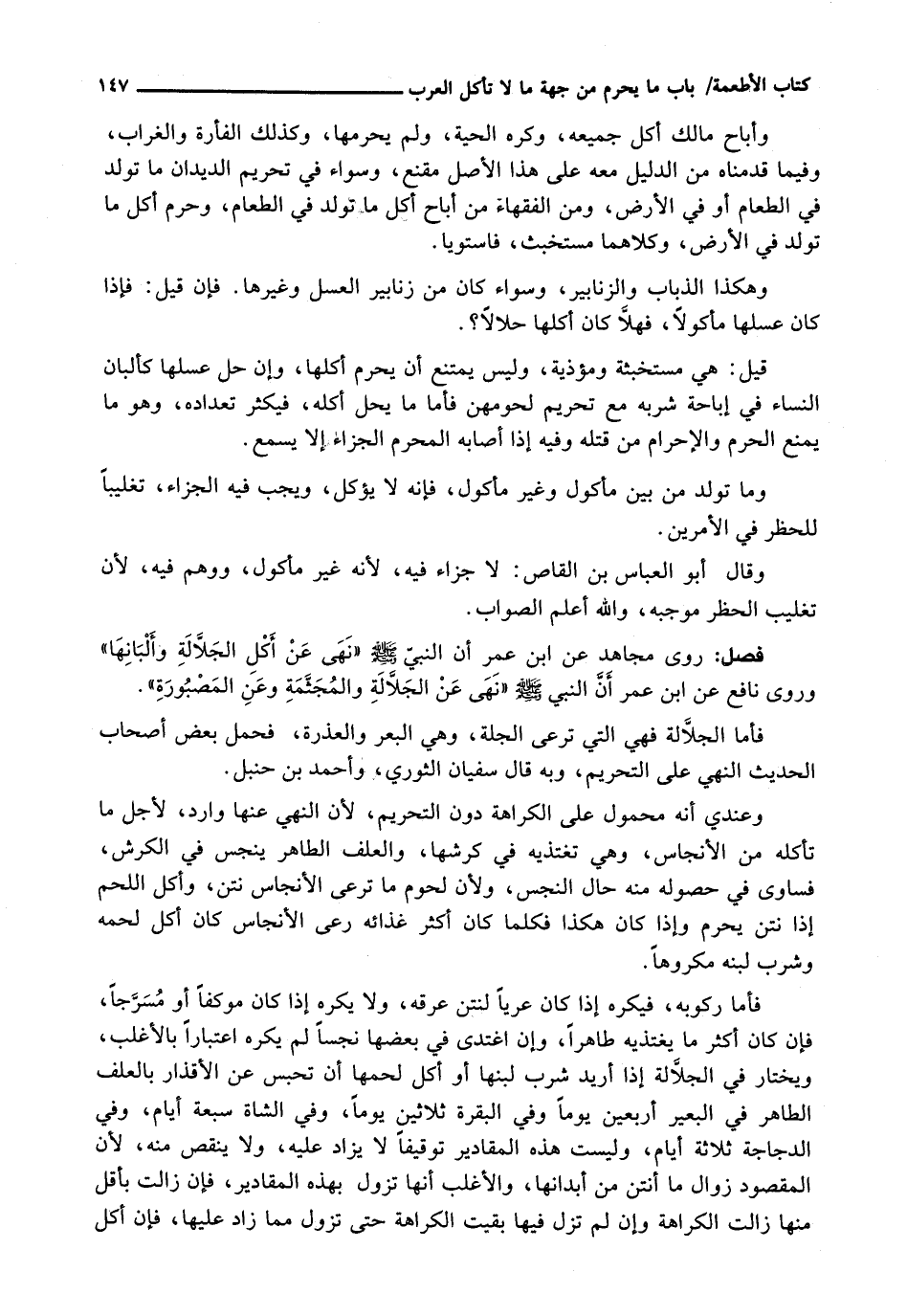 فَأَمَّا الجلالة فهي التي ترعى الحلة، وَهِيَ الْبَعْرُ وَالْعَذِرَةُ، فَحَمَلَ بَعْضُ أَصْحَابِ الْحَدِيثِ النَّهْيَ عَلَى التَّحْرِيمِ، وَبِهِ قَالَ سُفْيَانُ الثَّوْرِيُّ، وَأَحْمَدُ بْنُ حَنْبَلٍ.