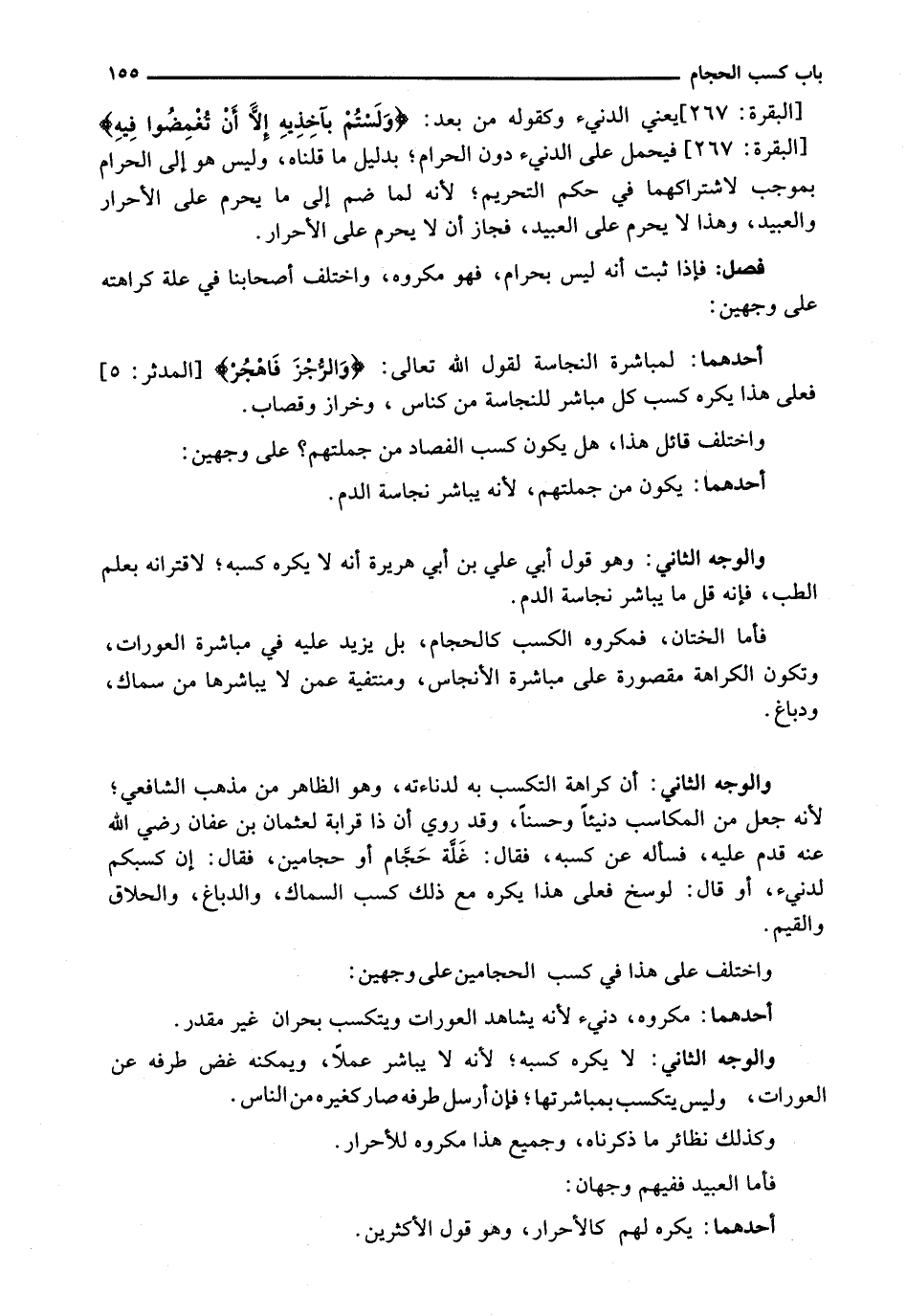 وَاخْتَلَفَ قَائِلُ هَذَا، هَلْ يَكُونُ كَسْبُ الْفَصَّادِ مِنْ جُمْلَتِهِمْ؟ عَلَى وَجْهَيْنِ: