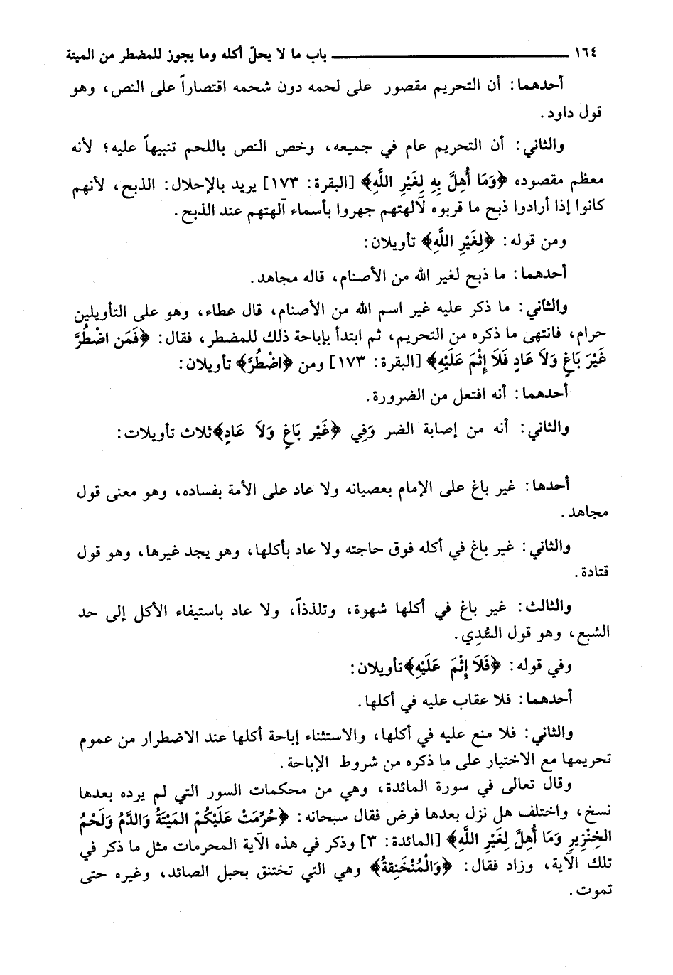 والثاني: أنه من إصابة الضر وفي {غَيْرَ بِاغٍ وَلاَ عَادٍ} ثَلَاثُ تَأْوِيلَاتٍ: