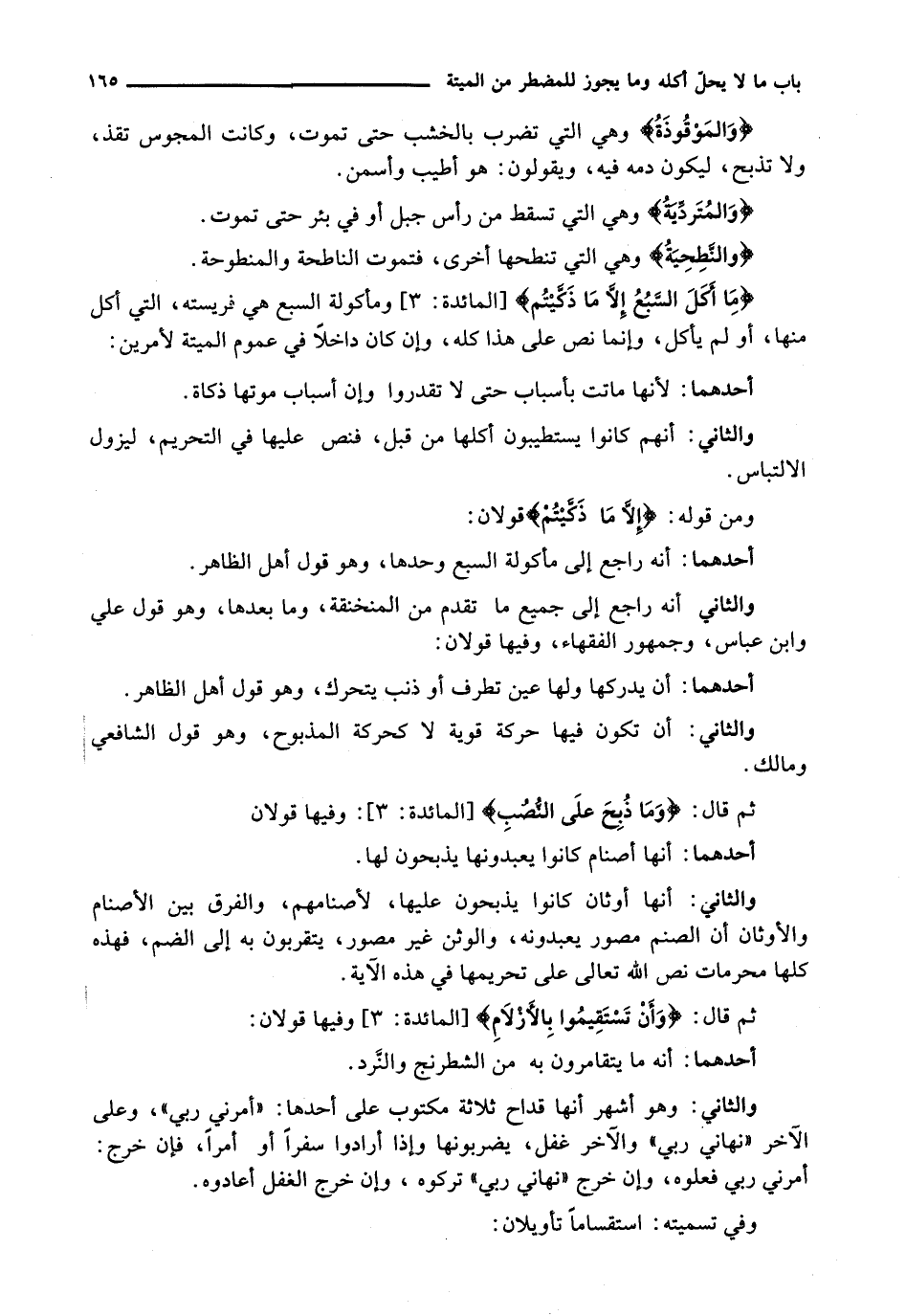 ثُمَّ قَالَ: {وَمَا ذُبِحَ علَى النُّصُبِ) {المائدة: 3) : وَفِيهَا قَوْلَانِ:
