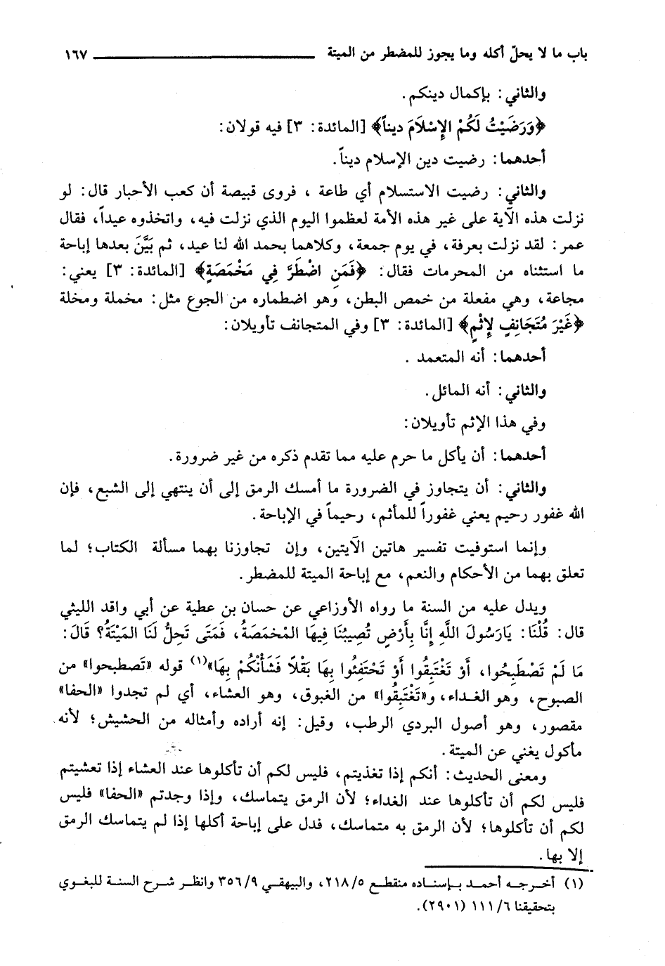 وَإِنَّمَا اسْتَوْفَيْتُ تَفْسِيرَ هَاتَيْنِ الْآيَتَيْنِ، وَإِنْ تَجَاوَزْنَا بِهِمَا مَسْأَلَةَ الْكِتَابِ؛ لِمَا تَعَلَّقَ بِهِمَا مِنَ الْأَحْكَامِ وَالنَّعَمِ، مَعَ إِبَاحَةِ الْمَيْتَةِ لِلْمُضْطَرِّ.