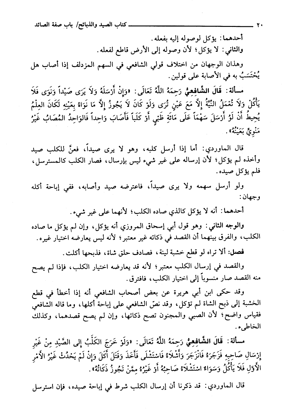 قال الشافعي رحمه الله تعالى: " وَإِنْ أَرْسَلَهُ وَلَا يَرَى صَيْدًا وَنَوَى فَلَا يُأْكَلُ وَلَا تَعْمَلُ النِّيَّةُ إِلَّا مَعَ عينٍ تَرَى وَلَوْ كَانَ لَا يَجُوزُ إِلَّا مَا نَوَاهُ بِعَيْنِهِ لَكَانَ الْعِلْمُ يُحِيطُ أَنْ لَوُ أَرْسَلَ سَهْمًا عَلَى مَائَةِ ظبيٍ أَوْ كَلَبًا فَأَصَابَ وَاحِدًا فَالْوَاحِدُ الْمُصَابُ غَيْرُ منويٍّ بِعَيْنِهِ ".