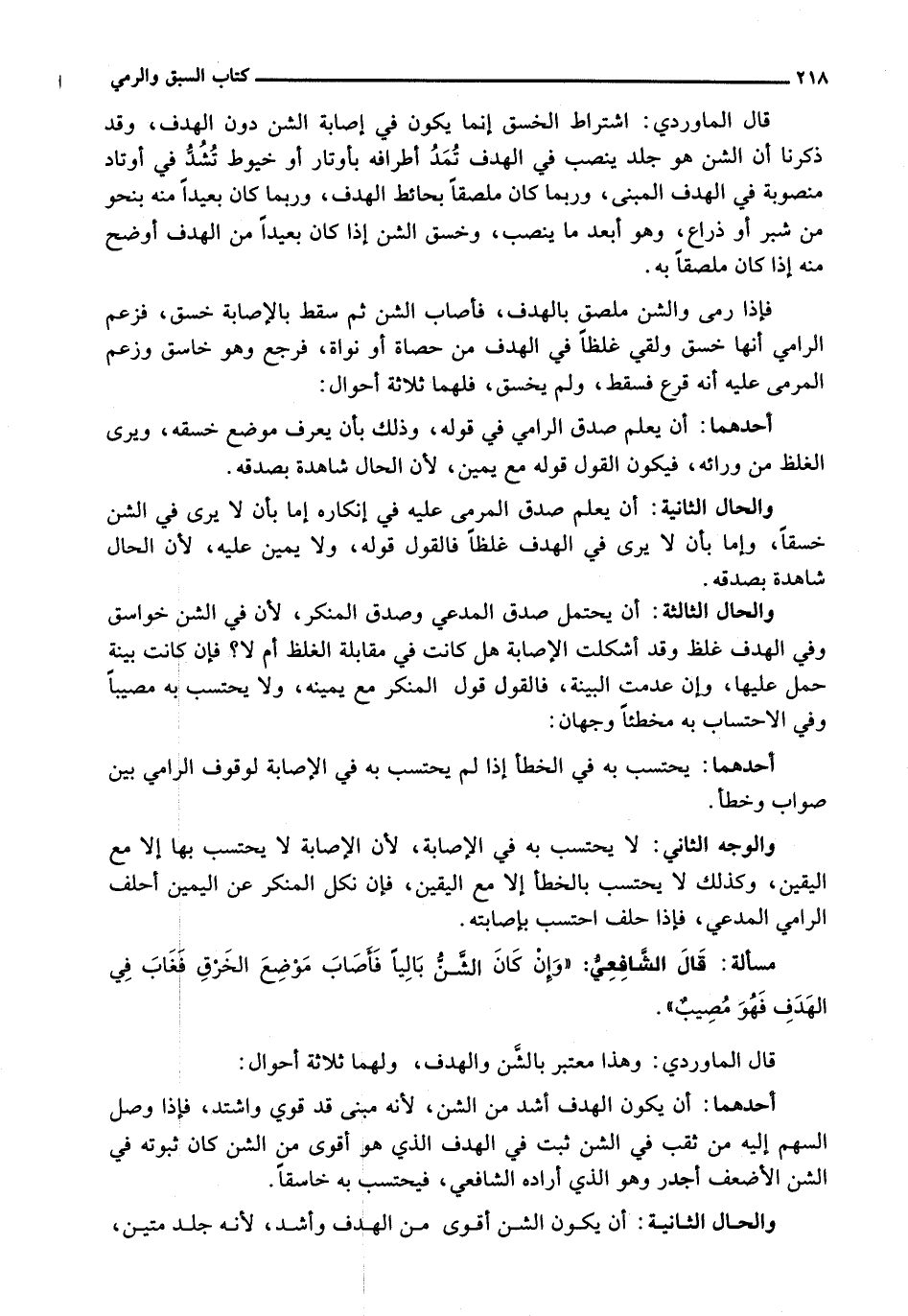 قَالَ الْمَاوَرْدِيُّ: وَهَذَا مُعْتَبِرٌ بِالشَّنِّ والهدف، ولهما ثلاثة أحوال:
