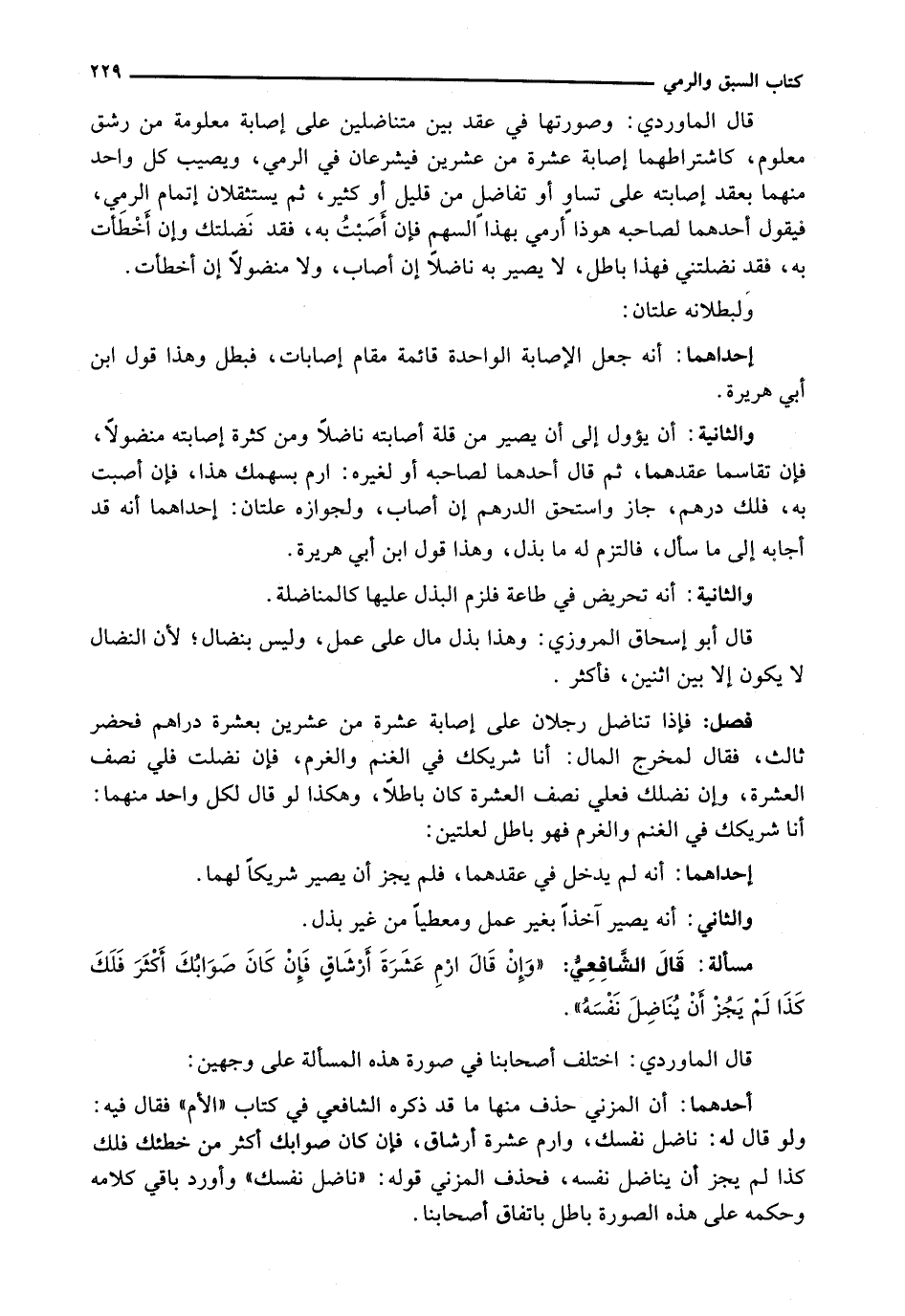 قال الشافعي: " وَإِنْ قَالَ ارْمِ عَشَرَةَ ارشاقٍ فَإِنْ كَانَ صَوَابُكَ أَكْثَرَ فَلَكَ كَذَا لَمْ يَجُزْ أَنْ يُنَاضِلَ نَفْسَهُ ".