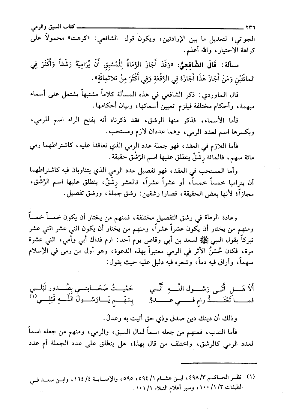 قال الشافعي: " وَقَدْ أَجَازَ الرُّمَاةُ لِلْمُسْبِقِ أَنْ يُرَامِيَهُ رَشْقًا وَأَكْثَرَ فِي الْمِائَتَيْنِ وَمَنْ أَجَازَ هَذَا أَجَازَهُ فِي الرُّقْعَةِ وَفِي أَكْثَرَ مِنْ ثلاثمائةٍ ".