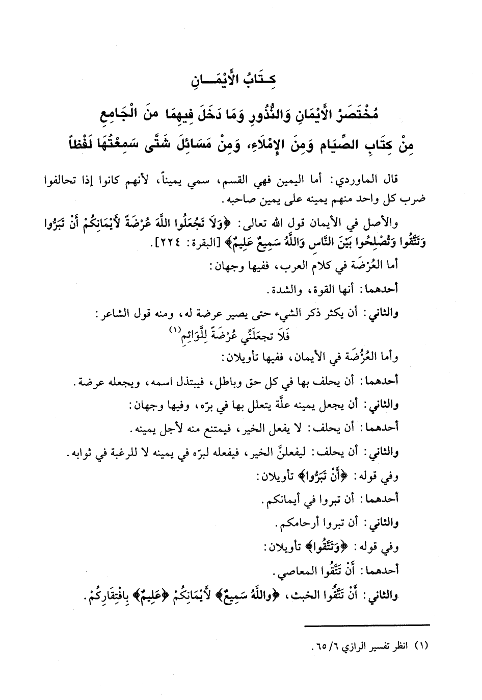 مختصر الأيمان والنذور وما دخل فيهما من الجامع من كتاب الصيام ومن الإملاء ومن مسائل شتى سمعتها لفظاً