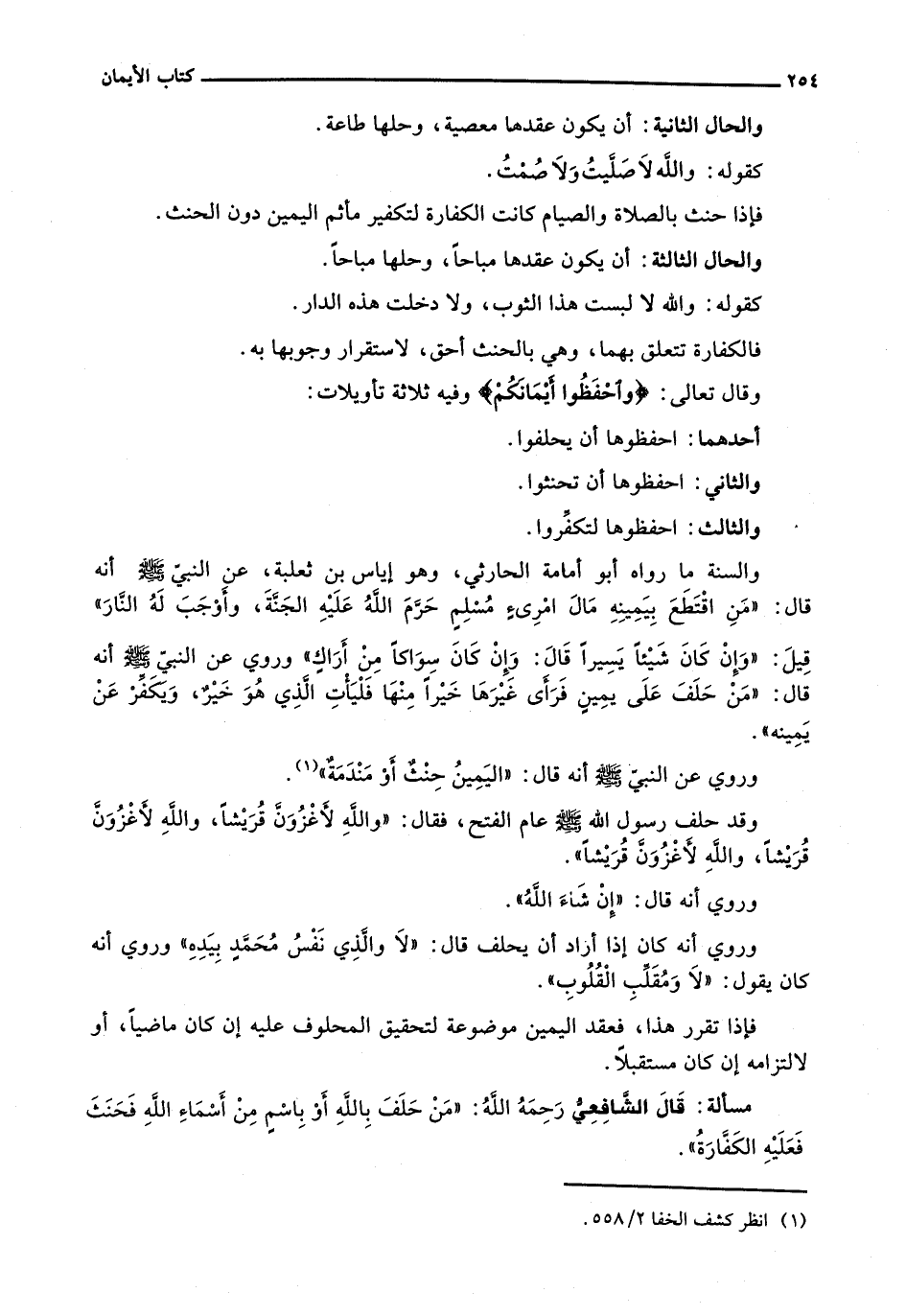 وَالسُّنَّةُ مَا رَوَاهُ أَبُو أُمَامَةَ الْحَارِثِيُّ، وَهُوَ إِيَاسُ بْنُ ثَعْلَبَةَ، عَنِ النبي - صَلَّى اللَّهُ عَلَيْهِ وَسَلَّم َ - أَنَّهُ قَالَ: " مَنِ اقْتَطَعَ بِيَمِينِهِ مَالَ امرئٍ مسلمٍ حَرَّمَ اللَّهُ عَلَيْهِ الْجَنَّةَ، وَأَوْجَبَ لَهُ النَّارَ " قِيلَ: " وَإِنْ كَانَ شَيْئًا يَسِيرًا قَالَ: وَإِنْ كَانَ سِوَاكًا مِنْ أراكٍ " وَرُوِيَ عَنِ النَّبِيِّ - صَلَّى اللَّهُ عَلَيْهِ وَسَلَّم َ - أَنَّهُ قَالَ: " مَنْ حَلَفَ عَلَى يمينٍ فَرَأَى غَيْرَهَا خيرا منها فليأت الذي هو خيرٌ، وَيُكَفِّرْ عَنْ يَمِينِهِ ".