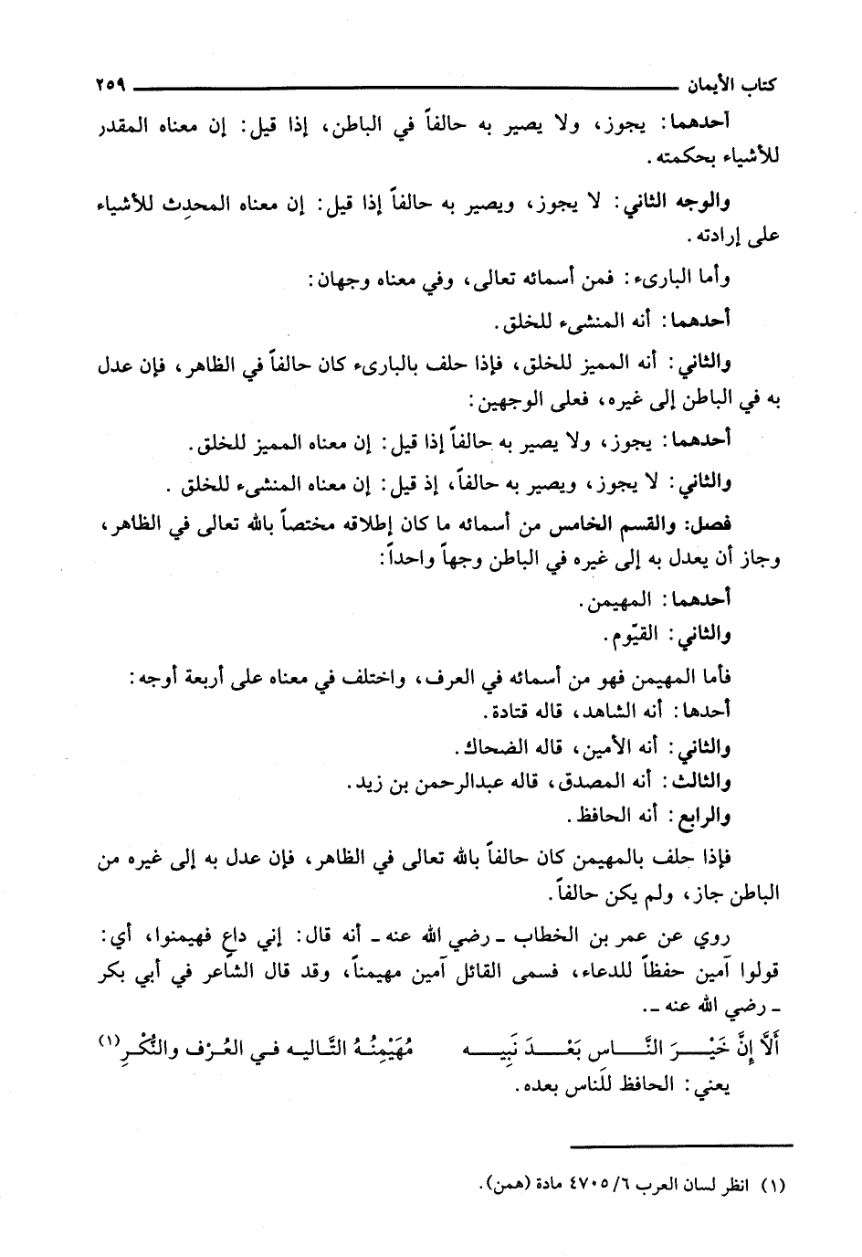 فَأَمَّا الْمُهَيْمِنُ فَهُوَ مِنْ أَسْمَائِهِ فِي الْعُرْفِ، وَاخْتُلِفَ فِي مَعْنَاهُ عَلَى أَرْبَعَةِ أَوْجُهٍ:
