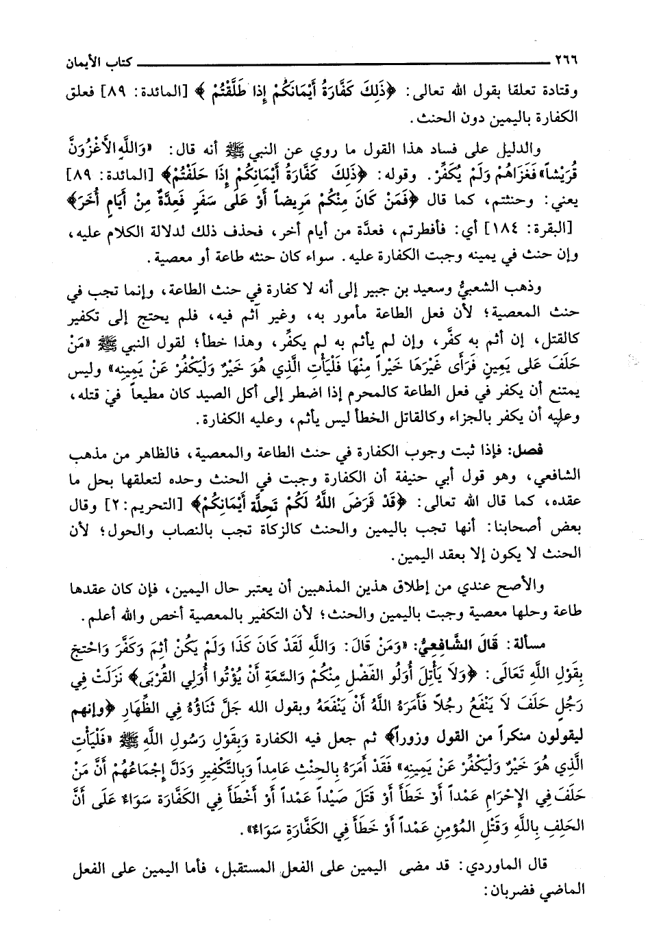 قال الشافعي: " وَمَنْ قَالَ: وَاللَّهِ لَقَدْ كَانَ كَذَا وَلَمْ يَكُنْ أَثِمَ وَكَفَّرَ وَاحْتَجَّ بِقَوْلِ اللَّهُ تَعَالَى: {وَلاَ يَأْتَلَ أُولُو الفَضْلِ مِنْكُمْ وَالسَّعَةِ أَنْ يُؤْتُوا أُولِي القُرْبَى} نَزَلَتْ فِي رجلٍ حَلَفَ لَا يَنْفَعُ رَجُلًا فأمره الله أن ينفعه وبقول الله جل ثناؤه في الظهار: {وَإنَّهُمْ لَيَقُولُونَ مُنْكَراً مِنَ القَوْلِ وَزُوراً} ثم جعل فيه الكفارة وبقول رسول الله - صَلَّى اللَّهُ عَلَيْهِ وَسَلَّم َ -: " فليأت الذي هو خيرٌ وليكفر عنه يمينه " فقد أمره بالحنث عامداً وبالتكفير ودل إجماعهم أن من حلف في الإحرام عمداً أو خطأً أو قتل صيداً عمداً أو أخطأ في الكفارة سواءٌ على أن الحلف بالله وقتل المؤمن عمداً أو خطأ في الكفارة سواءٌ ".