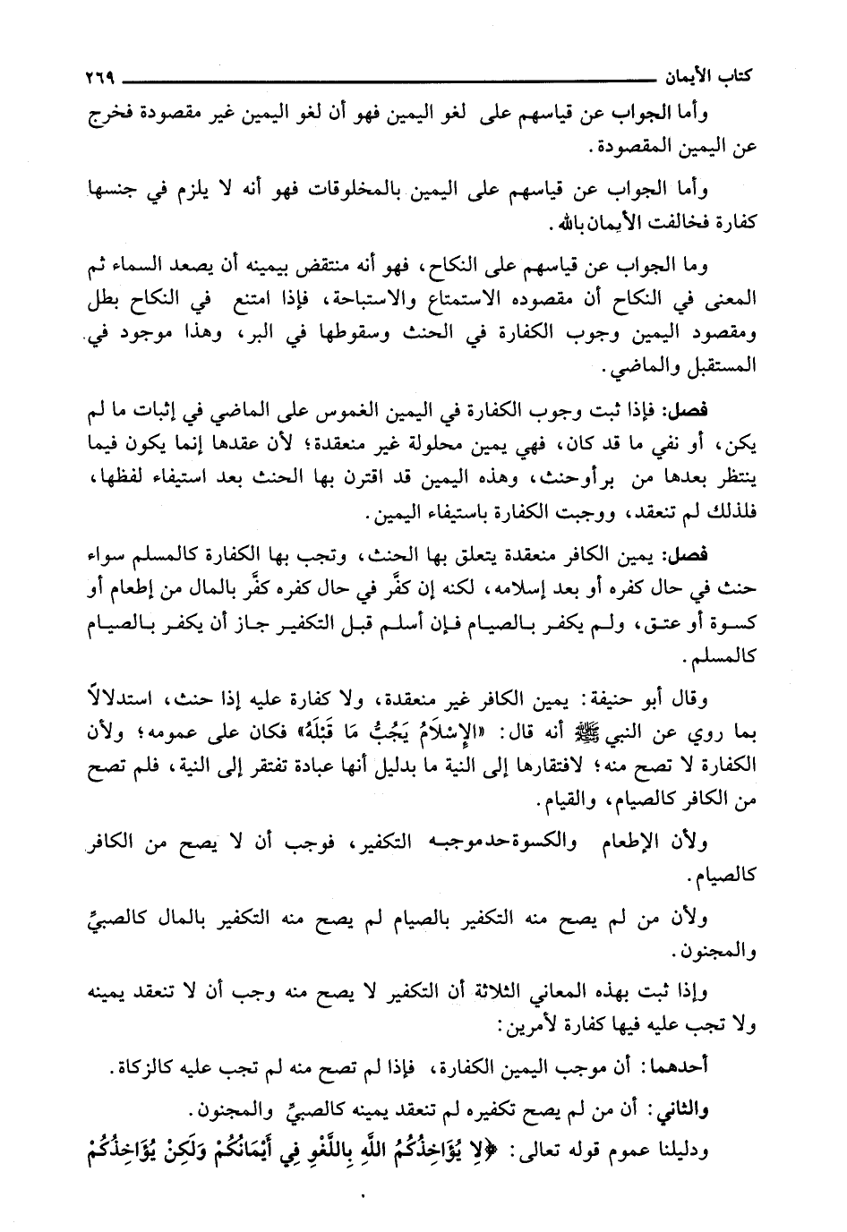 وَأَمَّا الْجَوَابُ عَنْ قِيَاسِهِمْ عَلَى لَغْوِ الْيَمِينِ فَهُوَ أَنَّ لَغْوَ الْيَمِينِ غَيْرُ مَقْصُودَةٍ فَخَرَجَ عَنِ الْيَمِينِ الْمَقْصُودَةِ.