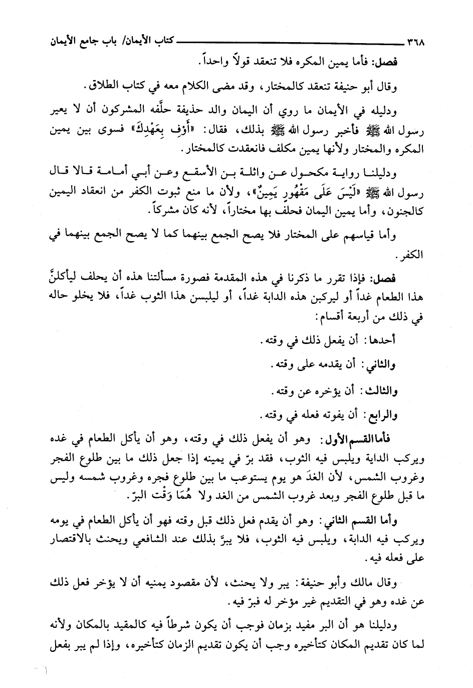 فَأَمَّا الْقِسْمُ الْأَوَّلُ: وَهُوَ أَنْ يَفْعَلَ ذَلِكَ فِي وَقْتِهِ، وَهُوَ أَنْ يَأْكُلَ الطَّعَامَ فِي غَدِهِ وَيَرْكَبَ الدَّابَّةَ وَيَلْبَسَ فِيهِ الثَّوْبَ، فَقَدْ بَرَّ فِي يَمِينِهِ إِذَا جَعَلَ ذَلِكَ مَا بَيْنَ طُلُوعِ الْفَجْرِ وَغُرُوبِ الشَّمْسِ، لِأَنَّ الْغَدَ هُوَ يَوْمٌ يَسْتَوْعِبُ مَا بَيْنَ طُلُوعِ فَجْرِهِ وَغُرُوبِ شَمْسِهِ وَلَيْسَ مَا قَبْلَ طُلُوعِ الْفَجْرِ وَبَعْدَ غُرُوبِ الشَّمْسِ مِنَ الْغَدِ وَلَا هُمَا وَقْتَ الْبِرِّ.