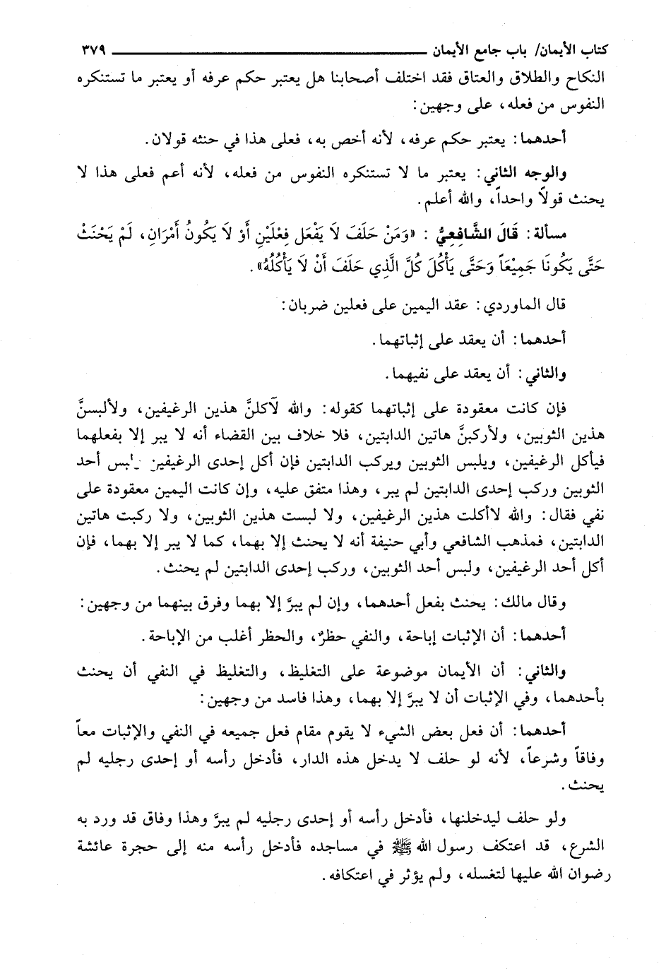 قَالَ الْمَاوَرْدِيُّ: عَقْدُ الْيَمِينِ عَلَى فِعْلَيْنِ ضَرْبَانِ: