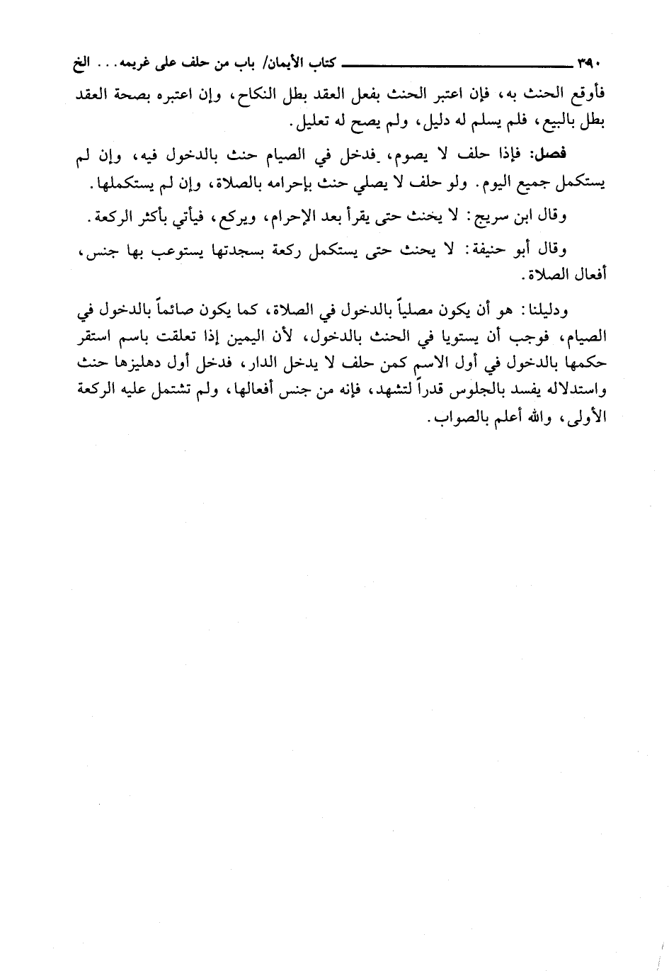 وَدَلِيلُنَا: هُوَ أَنْ يَكُونَ مُصَلِّيًا بِالدُّخُولِ فِي الصَّلَاةِ، كَمَا يَكُونُ صَائِمًا بِالدُّخُولِ فِي الصِّيَامِ، فَوَجَبَ أَنْ يَسْتَوِيَا فِي الْحِنْثِ بِالدُّخُولِ، لِأَنَّ الْيَمِينَ إِذَا تَعَلَّقَتْ بِاسْمٍ اسْتَقَرَّ حُكْمُهَا بِالدُّخُولِ فِي أَوَّلِ الِاسْمِ كَمَنْ حَلَفَ لَا يَدْخُلُ الدَّارَ، فَدَخَلَ أَوَّلَ دِهْلِيزِهَا حَنِثَ وَاسْتِدْلَالُهُ يَفْسُدُ بالجلوس قدراً لتشهد، فَإِنَّهُ مِنْ جِنْسِ أَفْعَالِهَا، وَلَمْ تَشْتَمِلْ عَلَيْهِ الرَّكْعَةُ الْأُولَى، وَاللَّهُ أَعْلَمُ بِالصَّوَابِ.