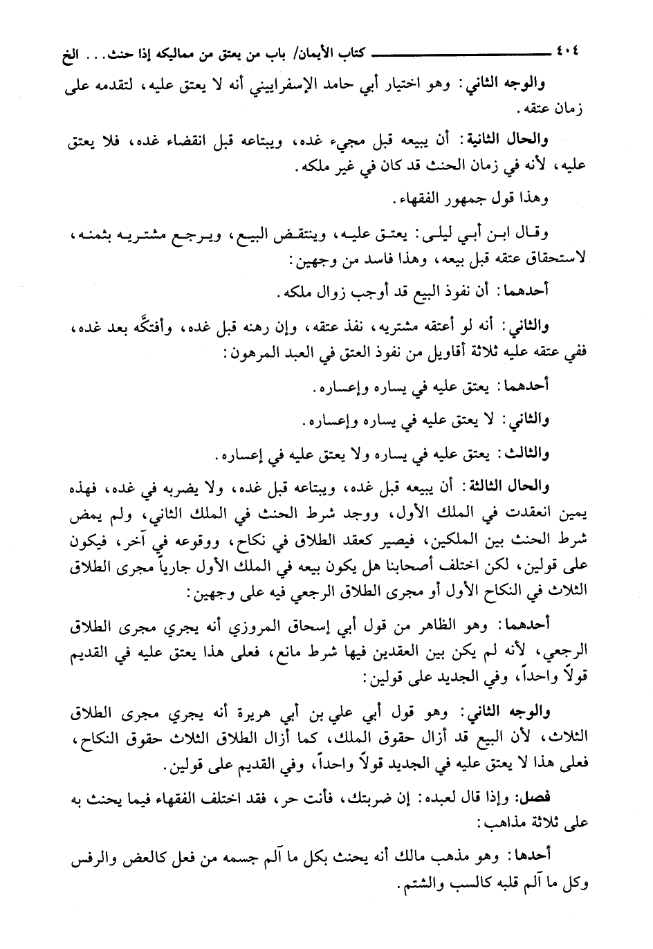وَالْوَجْهُ الثَّانِي: وَهُوَ اخْتِيَارُ أَبِي حَامِدٍ الْإِسْفَرَايِينِيِّ أَنَّهُ لَا يُعْتَقُ عَلَيْهِ، لِتَقَدُّمِهِ عَلَى زَمَانِ عِتْقِهِ.
