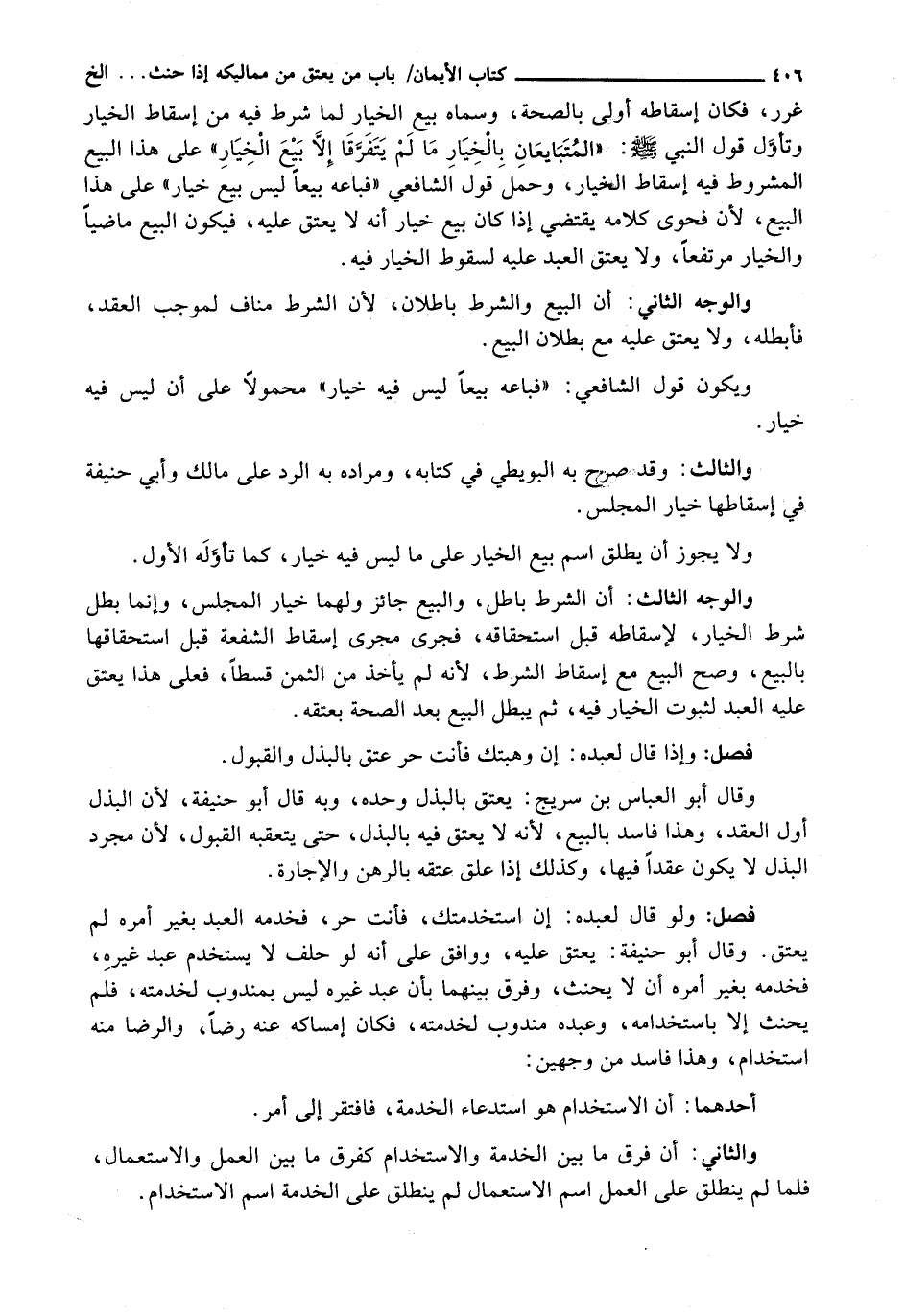 غَرَرٌ، فَكَانَ إِسْقَاطُهُ أَوْلَى بِالصِّحَّةِ، وَسَمَّاهُ بَيْعَ الْخِيَارِ لِمَا شُرِطَ فِيهِ مِنْ إِسْقَاطِ الْخِيَارِ وَتَأَوَّلَ قَوْلَ النَّبِيِّ - صَلَّى اللَّهُ عَلَيْهِ وَسَلَّم َ -: " الْمُتَبَايِعَانِ بِالْخِيَارِ مَا لَمْ يَتَفَرَّقَا إِلَّا بَيْعَ الْخِيَارِ " عَلَى هَذَا الْبَيْعِ الْمَشْرُوطِ فِيهِ إِسْقَاطُ الْخِيَارِ، وَحَمَلَ قَوْلَ الشَّافِعِيِّ " فَبَاعَهُ بَيْعًا لَيْسَ بَيْعَ خِيَارٍ " عَلَى هَذَا الْبَيْعِ، لِأَنَّ فَحْوَى كَلَامِهِ يَقْتَضِي إِذَا كَانَ بَيْعَ خِيَارٍ أَنَّهُ لَا يُعْتَقُ عَلَيْهِ، فَيَكُونُ الْبَيْعُ مَاضِيًا وَالْخِيَارُ مُرْتَفِعًا، وَلَا يُعْتَقُ الْعَبْدُ عَلَيْهِ لِسُقُوطِ الْخِيَارِ فِيهِ.