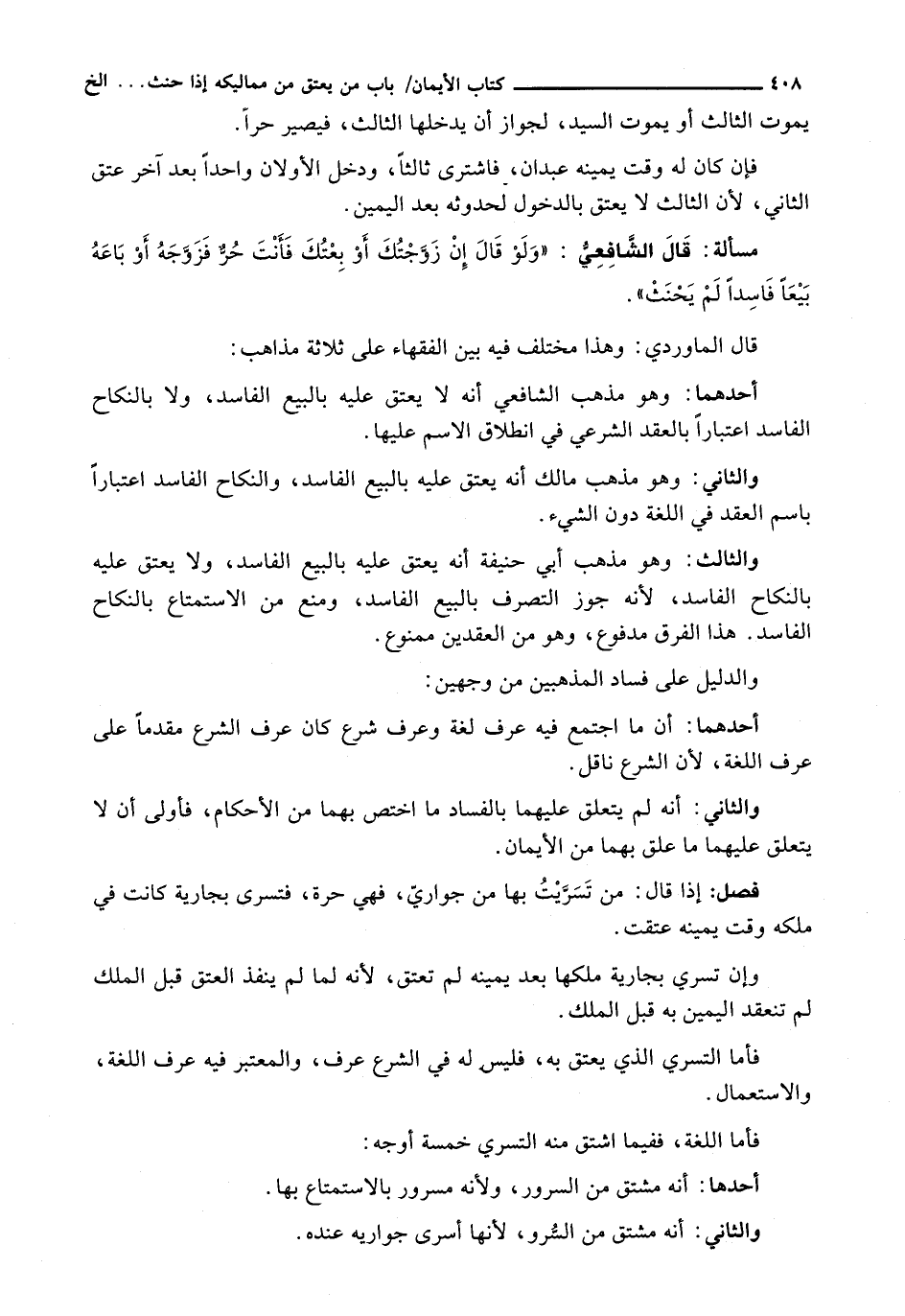 قَالَ الْمَاوَرْدِيُّ: وَهَذَا مُخْتَلَفٌ فِيهِ بَيْنَ الْفُقَهَاءِ عَلَى ثَلَاثَةِ مَذَاهِبَ: