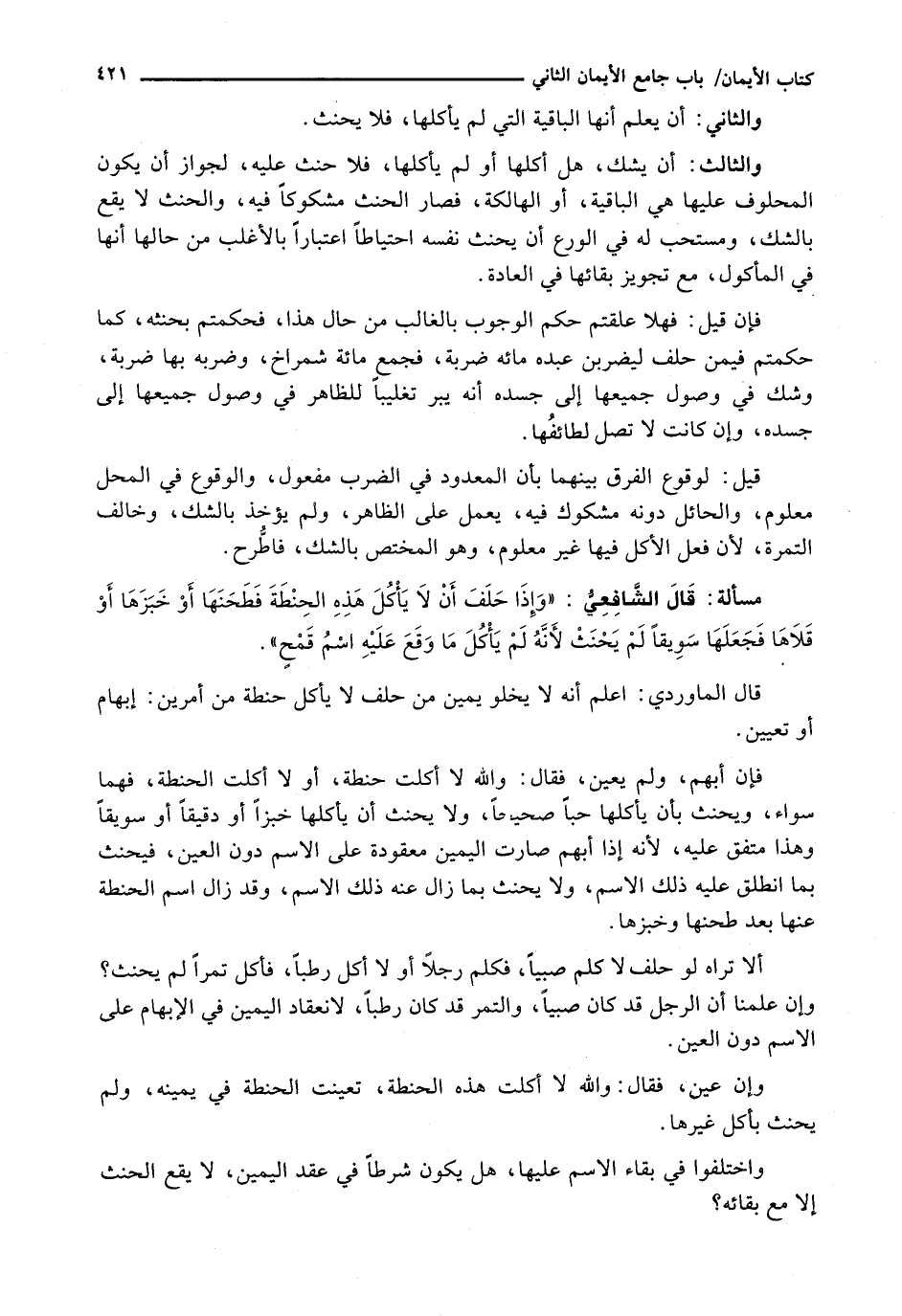 قَالَ الْمَاوَرْدِيُّ: اعْلَمْ أَنَّهُ لَا يَخْلُو يَمِينُ مَنْ حَلَفَ لَا يَأْكُلُ حِنْطَةً مِنْ أَمْرَيْنِ: إِبْهَامٌ أَوْ تَعْيِينٌ.