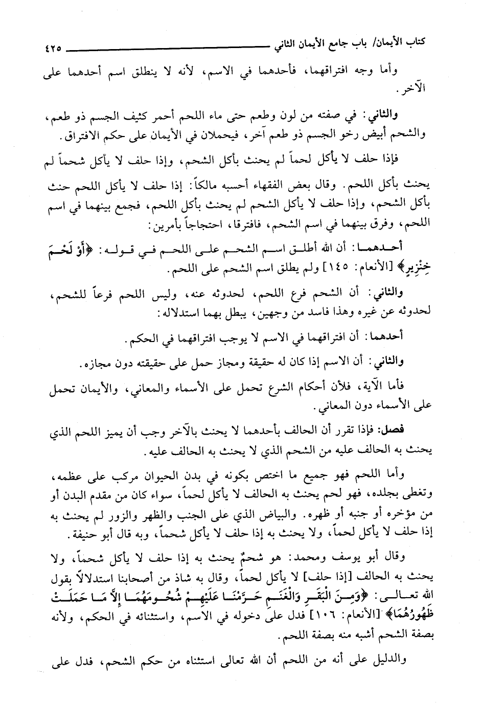 أَحَدُهُمَا: إنَّ اللَّهَ أَطْلَقَ اسْمَ الشَّحْمِ عَلَى اللَّحْمِ فِي قَوْلِهِ: {أَوْ لَحْمَ خِنْزِيرٍ) {الأنعام: 145) وَلَمْ يُطْلِقِ اسْمَ الشَّحْمِ عَلَى اللَّحْمِ.