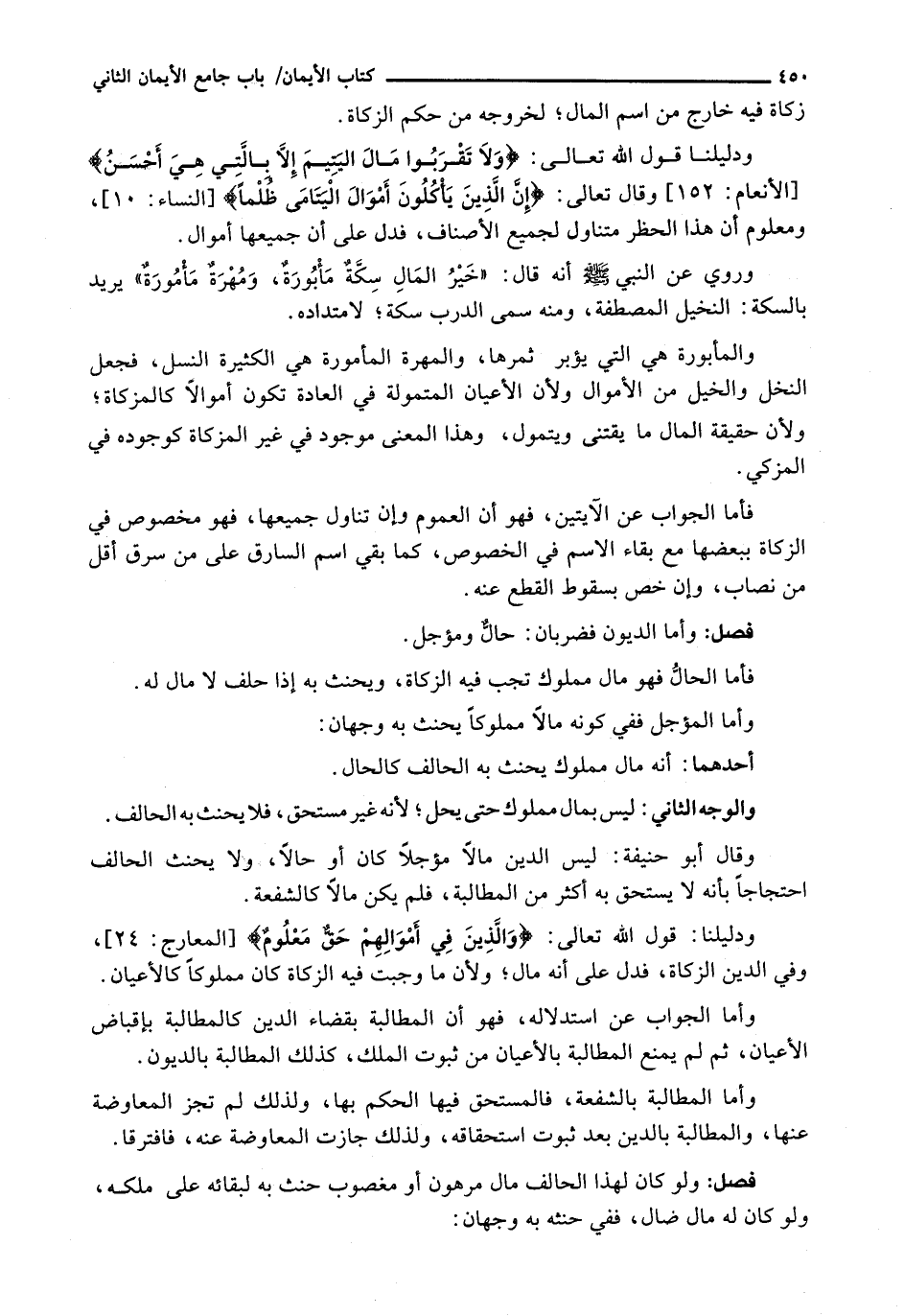 وَدَلِيلُنَا قَوْلُ اللَّهِ تَعَالَى: {وَلاَ تَقْرَبُوا مَالَ اليَتِيمَ إِلاَّ بِالَّتِي هِيَ أَحْسَنُ} (الأنعام: 152) وَقَالَ تَعَالَى: {إِنَّ الَّذِينَ يَأْكُلُونَ أمْوَالَ الْيَتَامَى ظُلْماً) {النساء: 10) ، وَمَعْلُومٌ أَنَّ هَذَا الْحَظْرَ مُتَنَاوِلٌ لِجَمِيعِ الْأَصْنَافِ، فَدَلَّ عَلَى أَنَّ جمعيها أَمْوَالٌ.