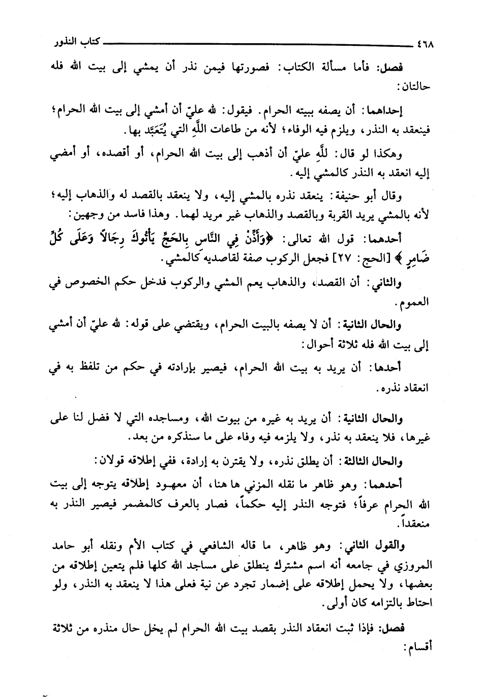 فَأَمَّا مَسْأَلَةُ الْكِتَابِ: فَصُورَتُهَا فِيمَنْ نَذَرَ أَنْ يَمْشِيَ إِلَى بَيْتِ اللَّهِ فَلَهُ حَالَتَانِ:
