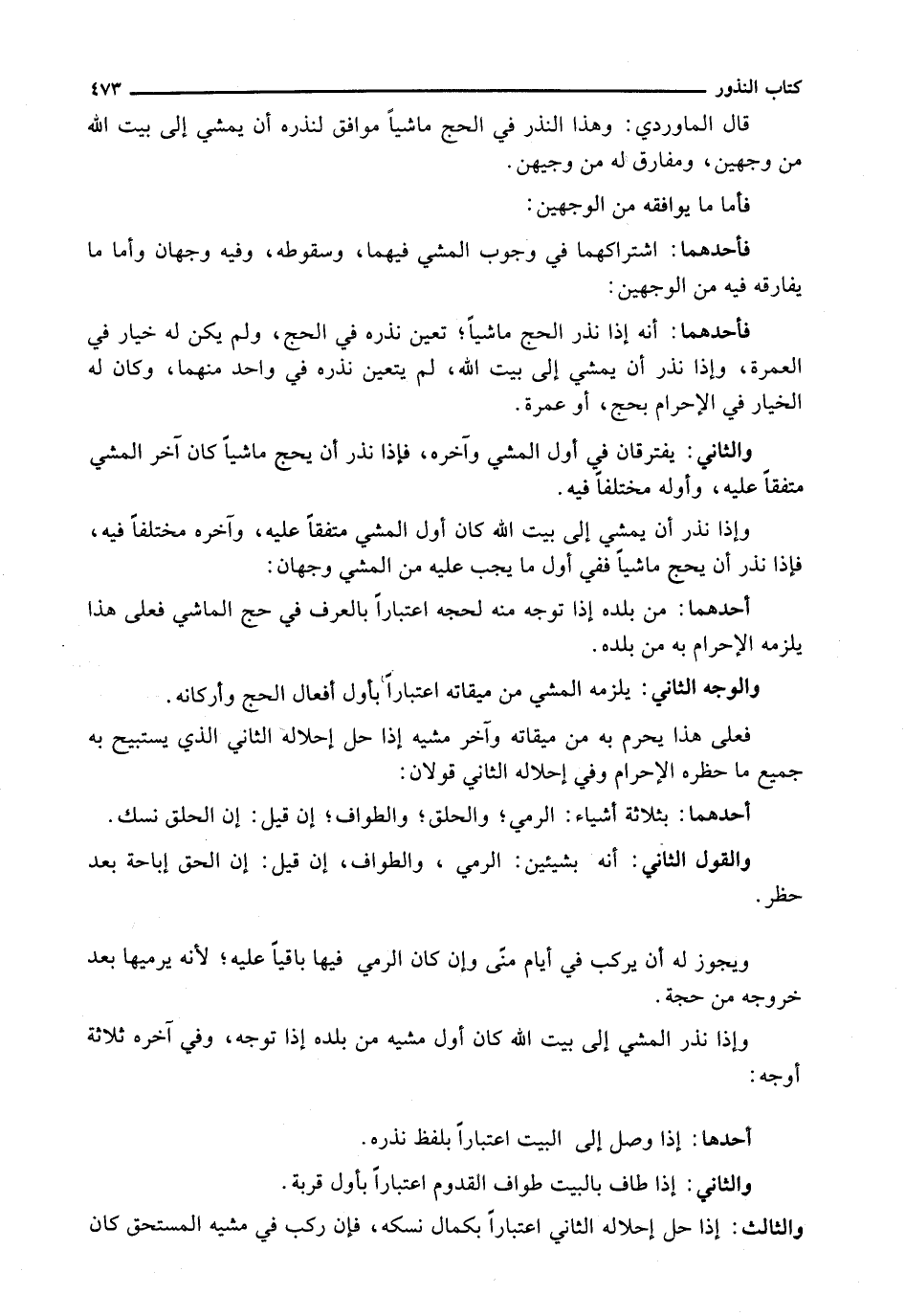 قَالَ الْمَاوَرْدِيُّ: وَهَذَا النَّذْرُ فِي الْحَجِّ مَاشِيًا مُوَافِقٌ لِنَذْرِهِ أَنْ يَمْشِيَ إِلَى بَيْتِ اللَّهِ مِنْ وَجْهَيْنِ، وَمَفَارِقٌ لَهُ مِنْ وَجْهَيْنِ.