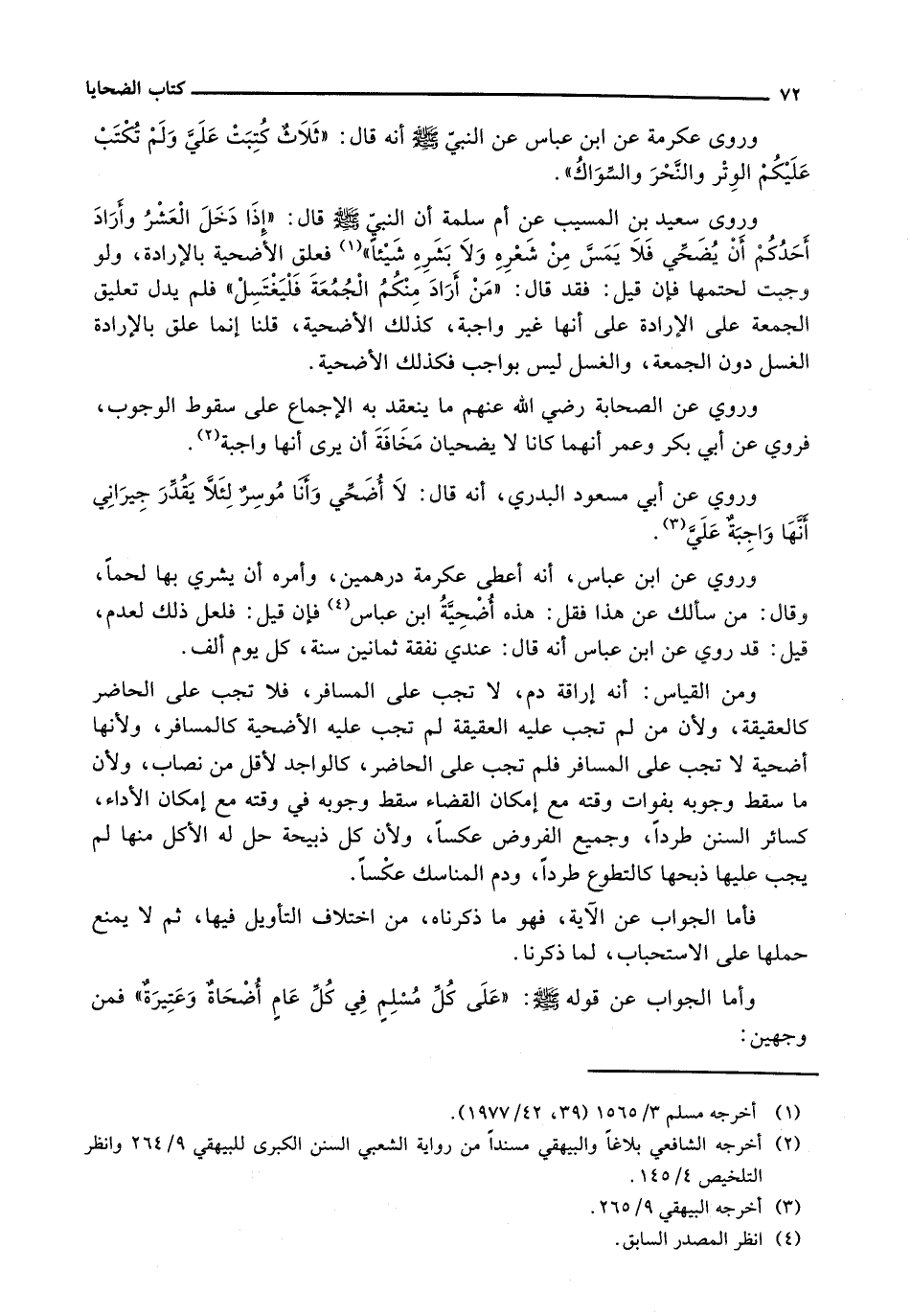 وَأَمَّا الْجَوَابُ عَنْ قَوْلِهِ - صَلَّى اللَّهُ عَلَيْهِ وَسَلَّم َ -: " عَلَى كُلِّ مسلمٍ فِي كُلِّ عامٍ أضحاةٌ وعتيرةٌ " فمن وجهين: