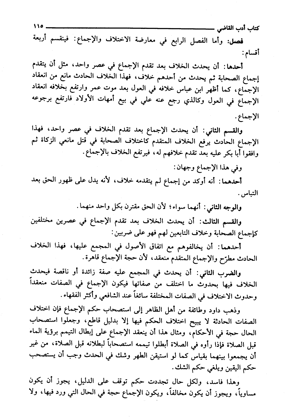 : وَأَمَّا الْفَصْلُ الرَّابِعُ فِي مُعَارَضَةِ الِاخْتِلَافِ وَالْإِجْمَاعِ: فَيَنْقَسِمُ أَرْبَعَةَ أَقْسَامٍ: