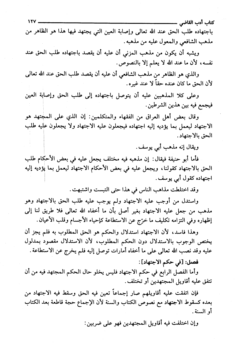 وَأَمَّا الْفَصْلُ الرَّابِعُ فِي حِكَمِ الِاجْتِهَادِ فَلَيْسَ يَخْلُو حَالُ الحُكْمِ الْمُجْتَهِدِ فِيهِ مِنْ أَنْ تَتَّفِقَ عَلَيْهِ أَقَاوِيلُ الْمُجْتَهِدِينَ أَوْ تَخْتَلِفُ.