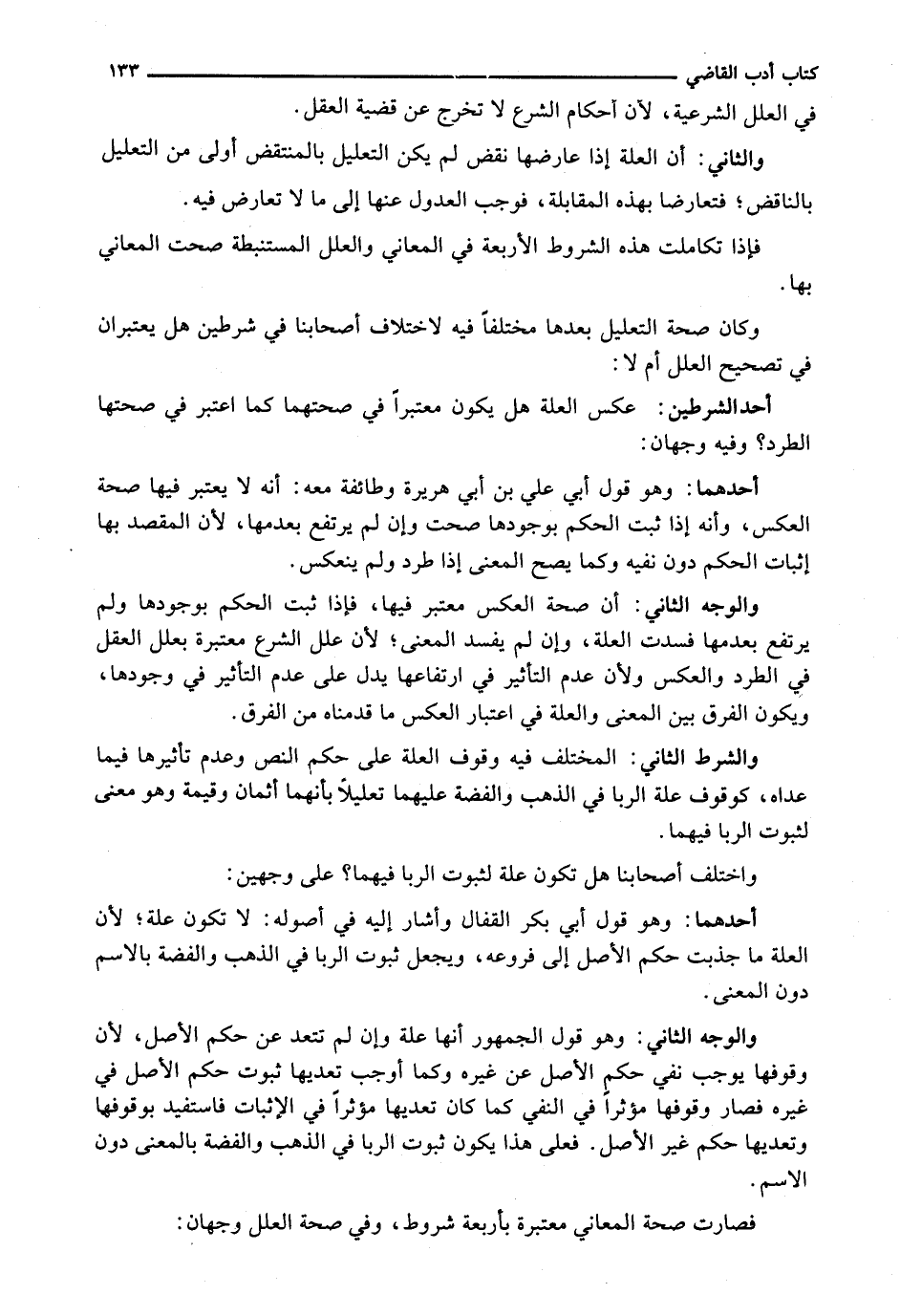 فَصَارَتْ صِحَّةُ الْمَعَانِي مُعْتَبَرَةً بِأَرْبَعَةِ شُرُوطٍ، وَفِي صِحَّةِ الْعِلَلِ وجهان: