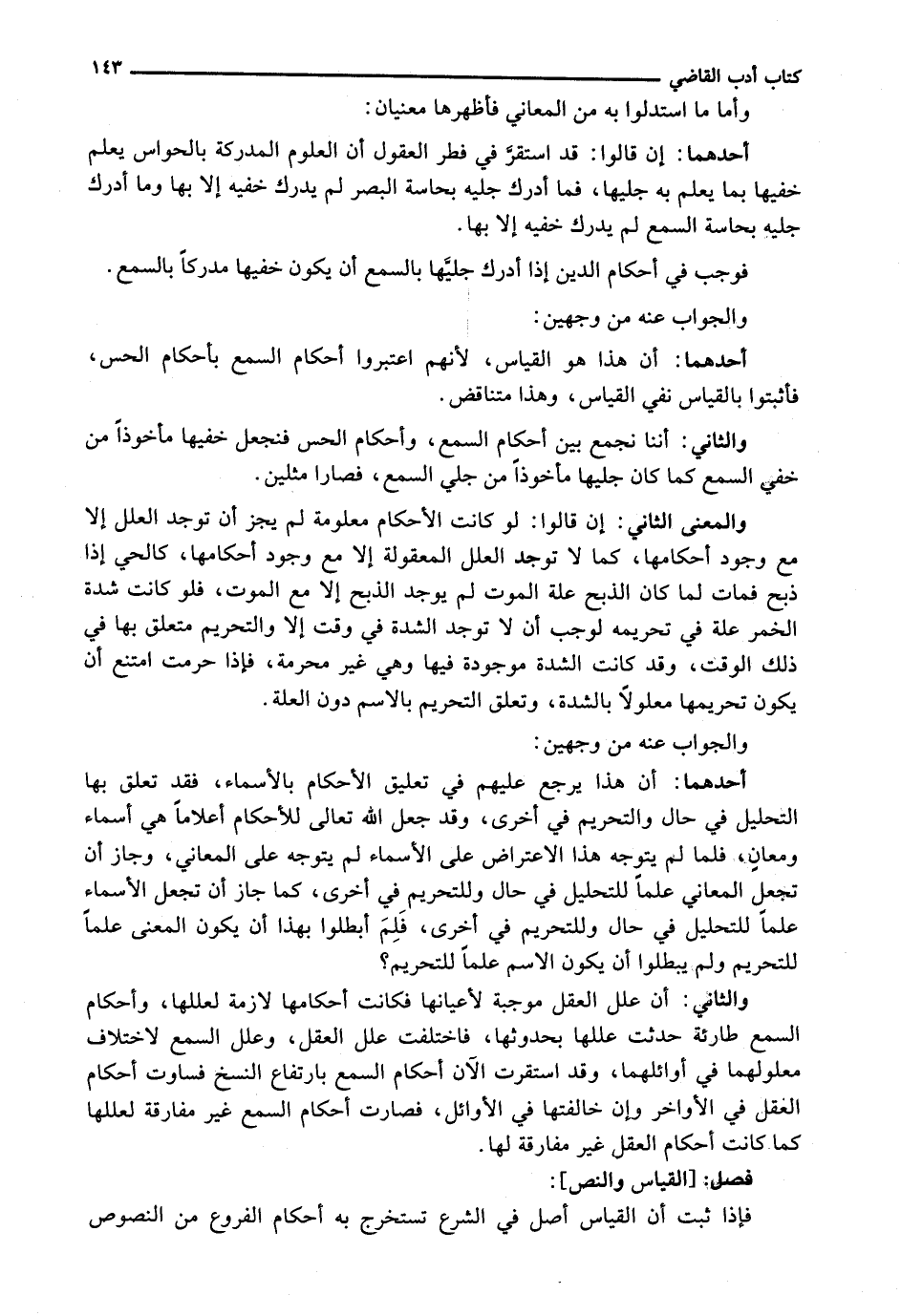 أَحَدُهُمَا: أَنَّ هَذَا هُوَ الْقِيَاسُ، لِأَنَّهُمُ اعْتَبَرُوا أَحْكَامَ السَّمْعِ بِأَحْكَامِ الْحِسِّ، فَأَثْبَتُوا بِالْقِيَاسِ نَفْيَ الْقِيَاسِ، وَهَذَا مُتَنَاقِضٌ.