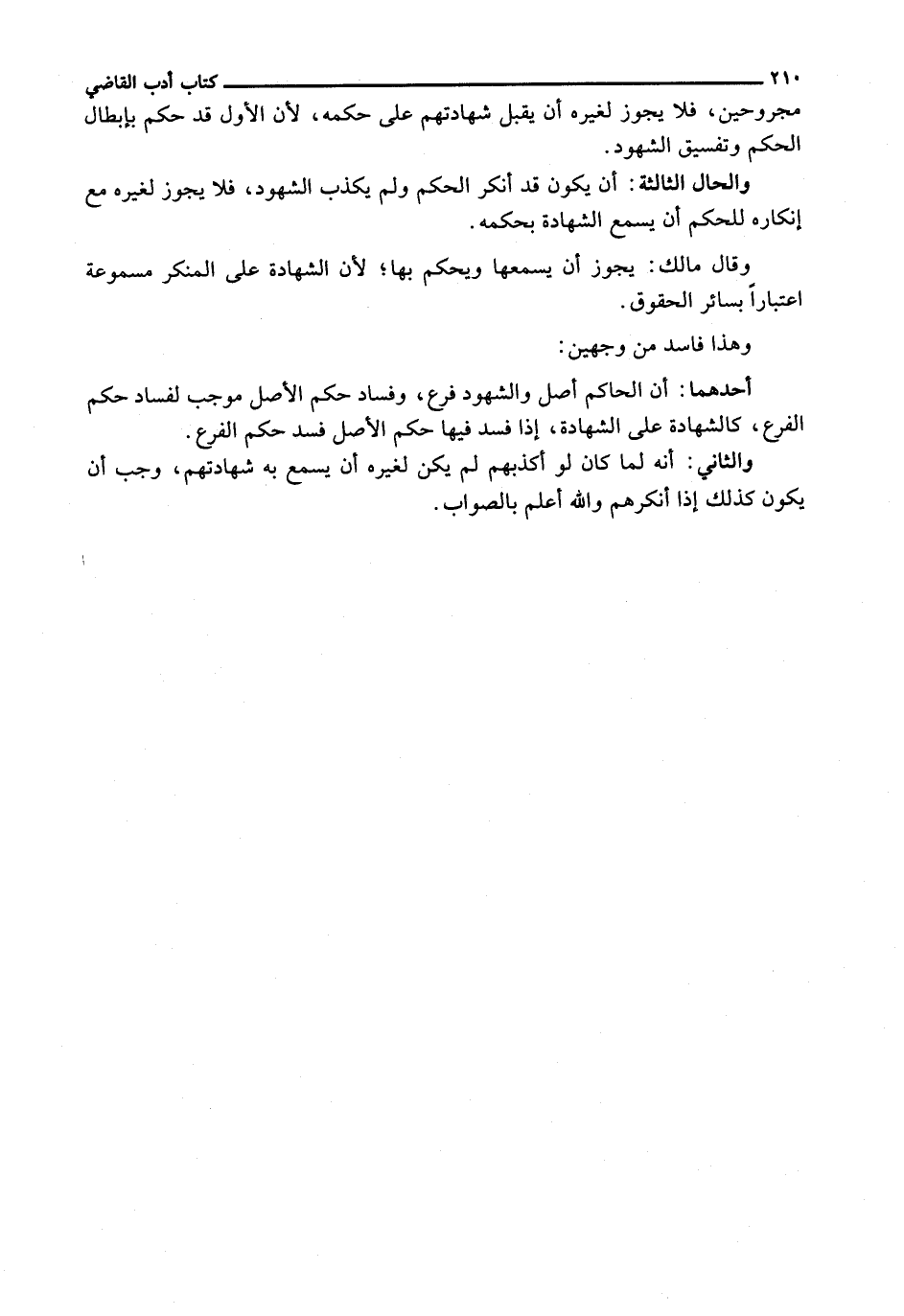 مَجْرُوحِينَ، فَلَا يَجُوزُ لِغَيْرِهِ أَنْ يَقْبَلَ شَهَادَتَهُمْ عَلَى حُكْمِهِ، لِأَنَّ الْأَوَّلَ قَدْ حَكَمَ بِإِبْطَالِ الْحُكْمِ وَتَفْسِيقِ الشُّهُودِ.