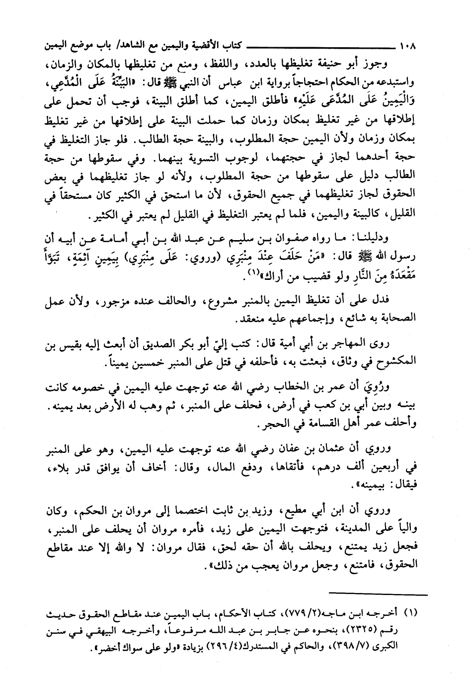 فَدَلَّ عَلَى أَنَّ تَغْلِيظَ الْيَمِينِ بِالْمِنْبَرِ مَشْرُوعٌ، وَالْحَالِفُ عِنْدَهُ مَزْجُورٌ، وَلِأَنَّ عَمَلَ الصَّحَابَةِ بِهِ شَائِعٌ، وَإِجْمَاعَهُمْ عَلَيْهِ مُنْعَقِدٌ.