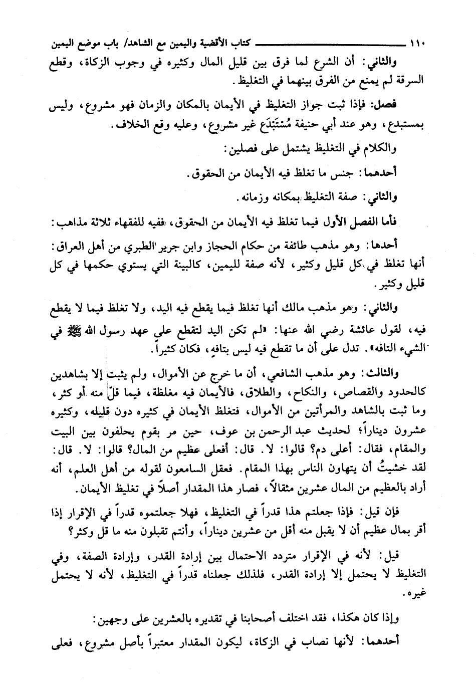 فَأَمَّا الْفَصْلُ الْأَوَّلُ فِيمَا تُغَلَّظُ فِيهِ الْأَيْمَانُ مِنَ الْحُقُوقِ، فَفِيهِ لِلْفُقَهَاءِ ثَلَاثَةُ مَذَاهِبَ: