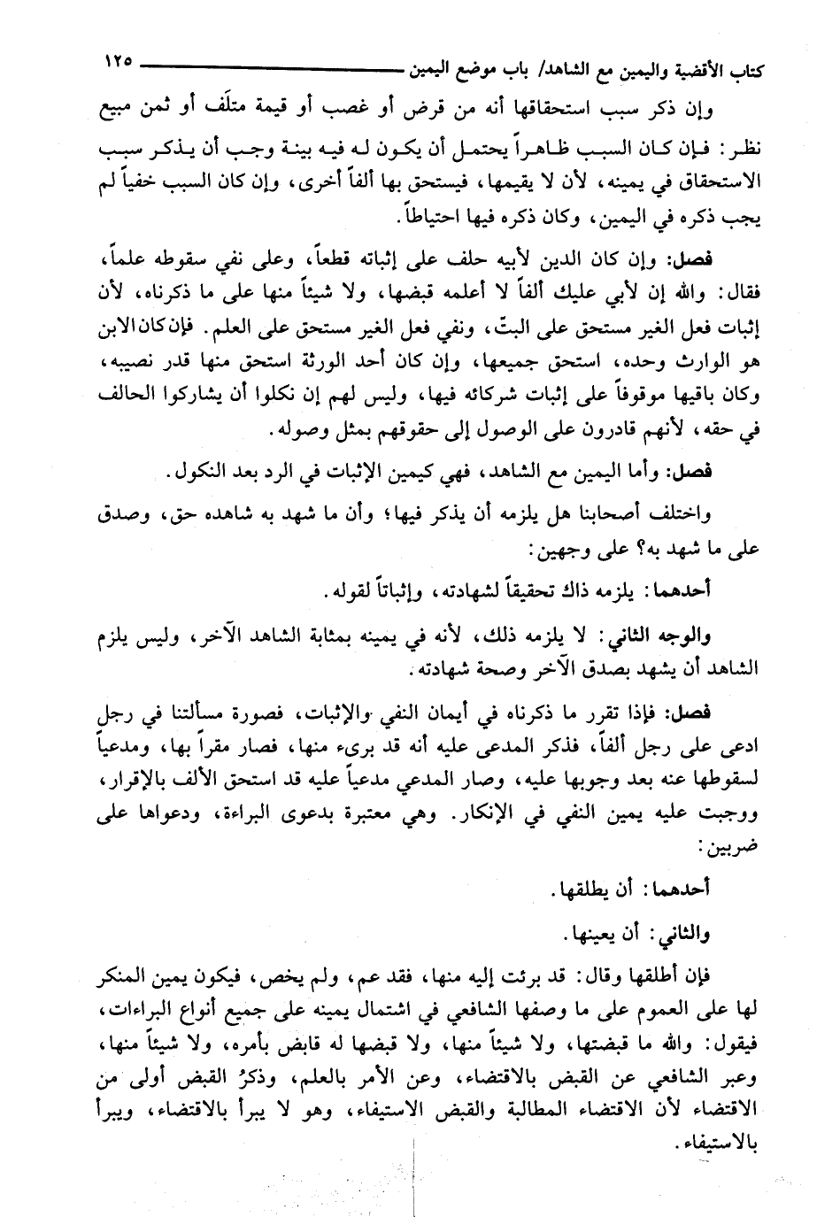 : وَإِنْ كَانَ الدَّيْنُ لِأَبِيهِ حَلَفَ عَلَى إِثْبَاتِهِ قَطْعًا، وَعَلَى نَفْيِ سُقُوطِهِ عِلْمًا، فَقَالَ: وَاللَّهِ إِنَّ لِأَبِي عَلَيْكَ أَلْفًا لَا أَعْلَمُهُ قَبَضَهَا، وَلَا شَيْئًا مِنْهَا عَلَى مَا ذَكَرْنَاهُ، لِأَنَّ إِثْبَاتَ فِعْلِ الْغَيْرِ مُسْتَحَقٌّ عَلَى الْبَتِّ، وَنَفْيَ فِعْلِ الْغَيْرِ مُسْتَحَقٌّ عَلَى الْعِلْمِ. فَإِنْ كَانَ الِابْنُ هُوَ الْوَارِثَ وَحْدَهُ، اسْتَحَقَّ جَمِيعَهَا، وَإِنْ كَانَ أَحَدَ الْوَرَثَةِ اسْتَحَقَّ مِنْهَا قَدْرَ نَصِيبِهِ، وَكَانَ بَاقِيهَا مَوْقُوفًا عَلَى إِثْبَاتِ شُرَكَائِهِ فِيهَا، وَلَيْسَ لَهُمْ إِنْ نَكَلُوا أَنْ يُشَارِكُوا الْحَالِفَ فِي حَقِّهِ، لِأَنَّهُمْ قَادِرُونَ عَلَى الْوُصُولِ إِلَى حُقُوقِهِمْ بِمِثْلِ وُصُولِهِ.