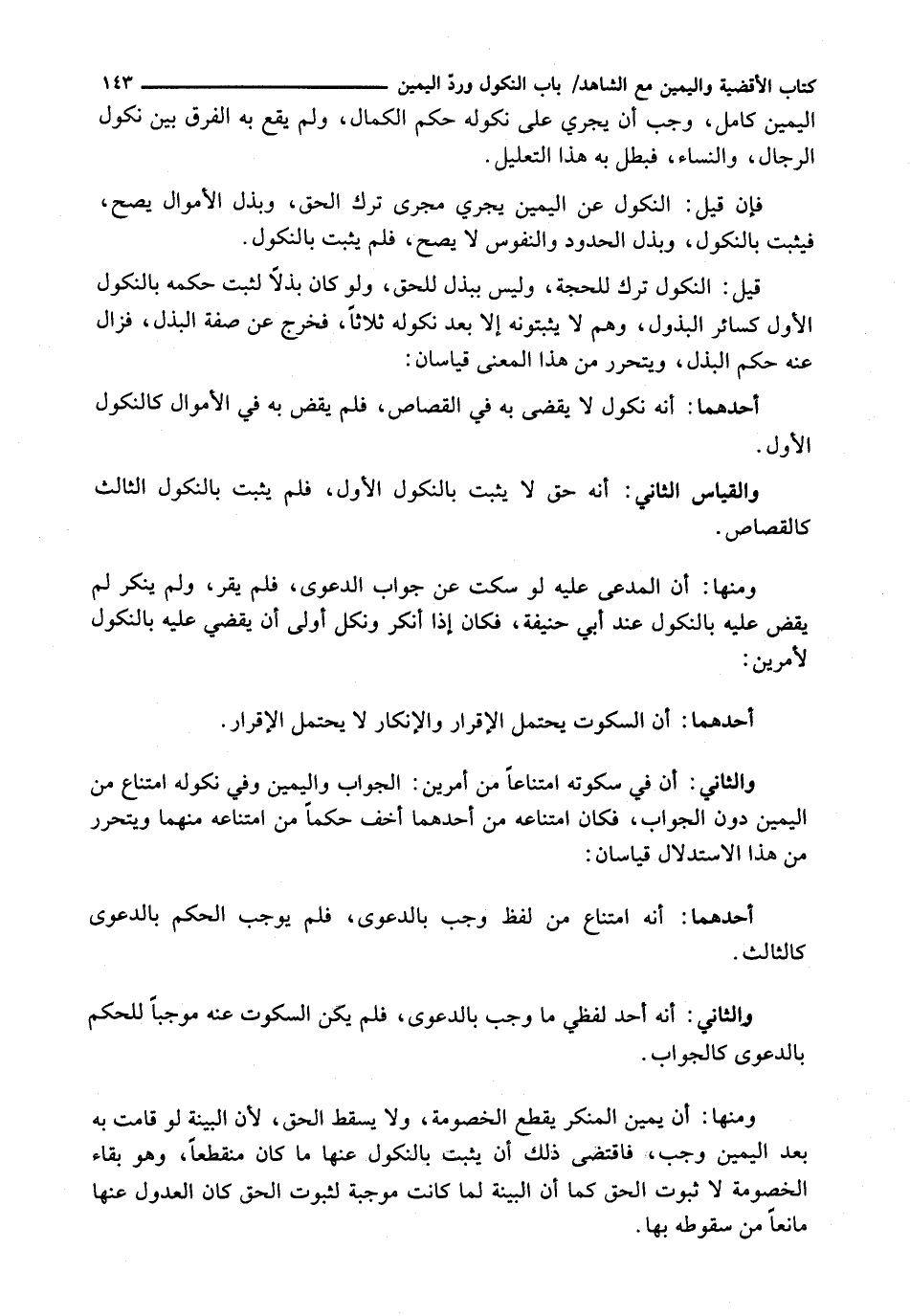 قِيلَ: النُّكُولُ تَرْكٌ لِلْحُجَّةِ، وَلَيْسَ بِبَذْلٍ لِلْحَقِّ، وَلَوْ كَانَ بَذْلًا لَثَبَتَ حُكْمُهُ بِالنُّكُولِ الْأَوَّلِ كَسَائِرِ الْبُذُولِ، وَهُمْ لَا يُثْبِتُونَهُ إِلَّا بَعْدَ نُكُولِهِ ثَلَاثًا، 7 فَخَرَجَ عَنْ صِفَةِ الْبَذْلِ، فَزَالَ عَنْهُ حُكْمُ الْبَذْلِ، وَيَتَحَرَّرُ مِنْ هَذَا الْمَعْنَى قِيَاسَانِ:
