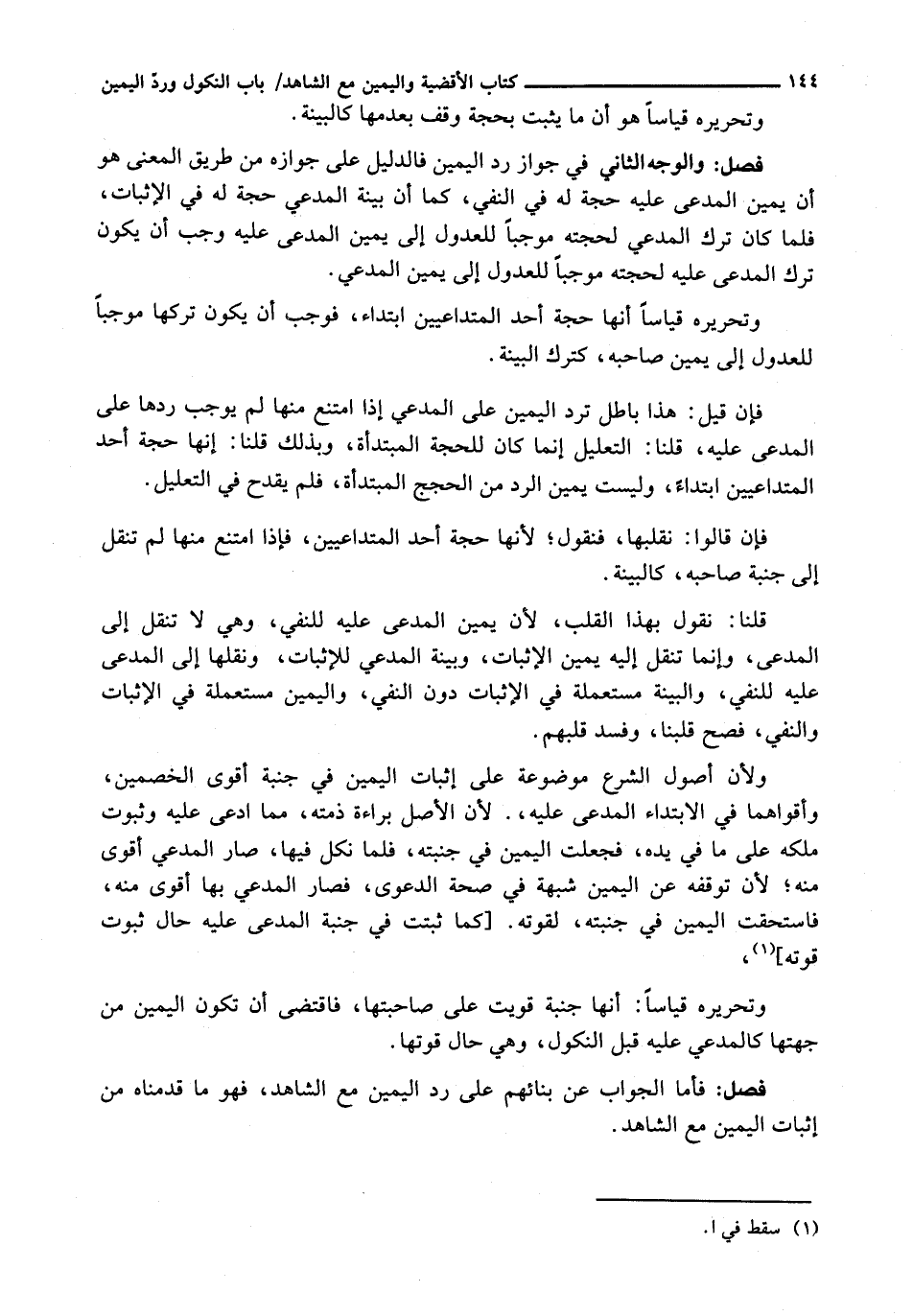وَلِأَنَّ أُصُولَ الشَّرْعِ مَوْضُوعَةٌ عَلَى إِثْبَاتِ الْيَمِينِ فِي جَنَبَةِ أَقْوَى الْخَصْمَيْنِ، وَأَقْوَاهُمَا فِي الِابْتِدَاءِ الْمُدَّعَى عَلَيْهِ،. لِأَنَّ الْأَصْلَ بَرَاءَةُ ذِمَّتِهِ، مِمَّا ادُّعِىَ عَلَيْهِ وَثُبُوتُ مِلْكِهِ عَلَى مَا فِي يَدِهِ، فَجُعِلَتِ الْيَمِينُ فِي جَنَبَتِهِ، فَلَمَّا نَكَلَ فِيهَا، صَارَ الْمُدَّعِي أَقْوَى مِنْهُ؛ لِأَنَّ تَوَقُّفَهُ عَنِ الْيَمِينِ شُبْهَةٌ فِي صِحَّةِ الدَّعْوَى، فَصَارَ الْمُدَّعِي بِهَا أَقْوَى مِنْهُ، فَاسْتَحَقَّتِ الْيَمِينُ فِي جَنَبَتِهِ، لِقُوَّتِهِ. [كَمَا ثَبَتَتْ فِي جَنَبَةِ الْمُدَّعَى عَلَيْهِ حَالَ ثُبُوتِ قُوَّتِهِ] ،