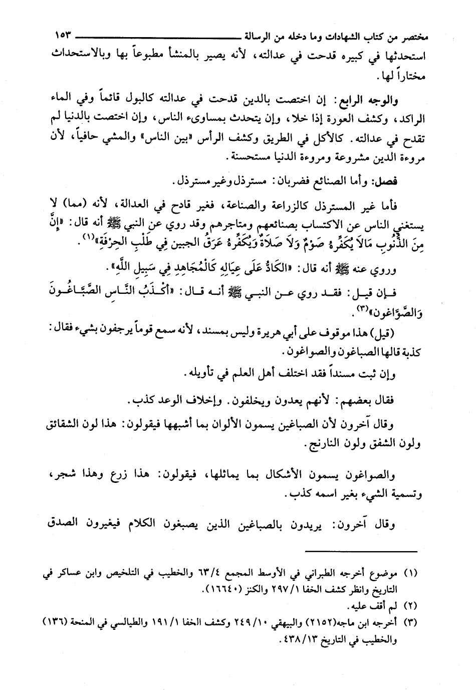 فَأَمَّا غَيْرُ الْمُسْتَرْذَلِ كَالزِّرَاعَةِ وَالصِّنَاعَةِ، فَغَيْرُ قَادِحٍ فِي الْعَدَالَةِ، لِأَنَّهُ (مِمَّا) لَا يَسْتَغْنِي النَّاسُ عَنِ الِاكْتِسَابِ بِصَنَائِعِهِمْ وَمَتَاجِرِهِمْ وَقَدْ رُوِيَ عَنِ النَّبِيِّ - صَلَّى اللَّهُ عَلَيْهِ وَسَلَّم َ - أَنَّهُ قَالَ: " إِنَّ مِنَ الذُّنُوبِ مَا لَا يُكَفِّرُهُ صَوْمٌ وَلَا صَلَاةٌ وَيُكَفِّرُهُ عَرَقُ الْجَبِينِ فِي طَلَبِ الْحِرْفَةِ ".