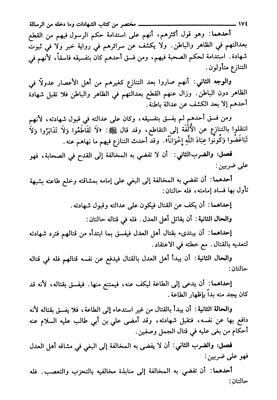وَمَنْ فَسَّقَ أَحَدَهُمْ لَمْ يَفْسُقْ بِتَفْسِيقِهِ، وَكَانَ عَلَى عَدَالَتِهِ فِي قَبُولِ شَهَادَتِهِ، لِأَنَّهُمُ انْتَقَلُوا بِالتَّنَازُعِ عَنِ الْأُلْفَةِ إِلَى التَّقَاطُعِ، وَقَدْ قَالَ - صَلَّى اللَّهُ عَلَيْهِ وَسَلَّم َ -: " لَا تَقَاطَعُوا وَلَا تَدَابَرُوا وَلَا تَبَاغَضُوا وَكُونُوا عِبَادَ اللَّهِ إِخْوَانًا ". وَقَدْ أَحْدَثَ التَّنَازُعُ فِيهِمْ مَا نَهَاهُمْ عَنْهُ.