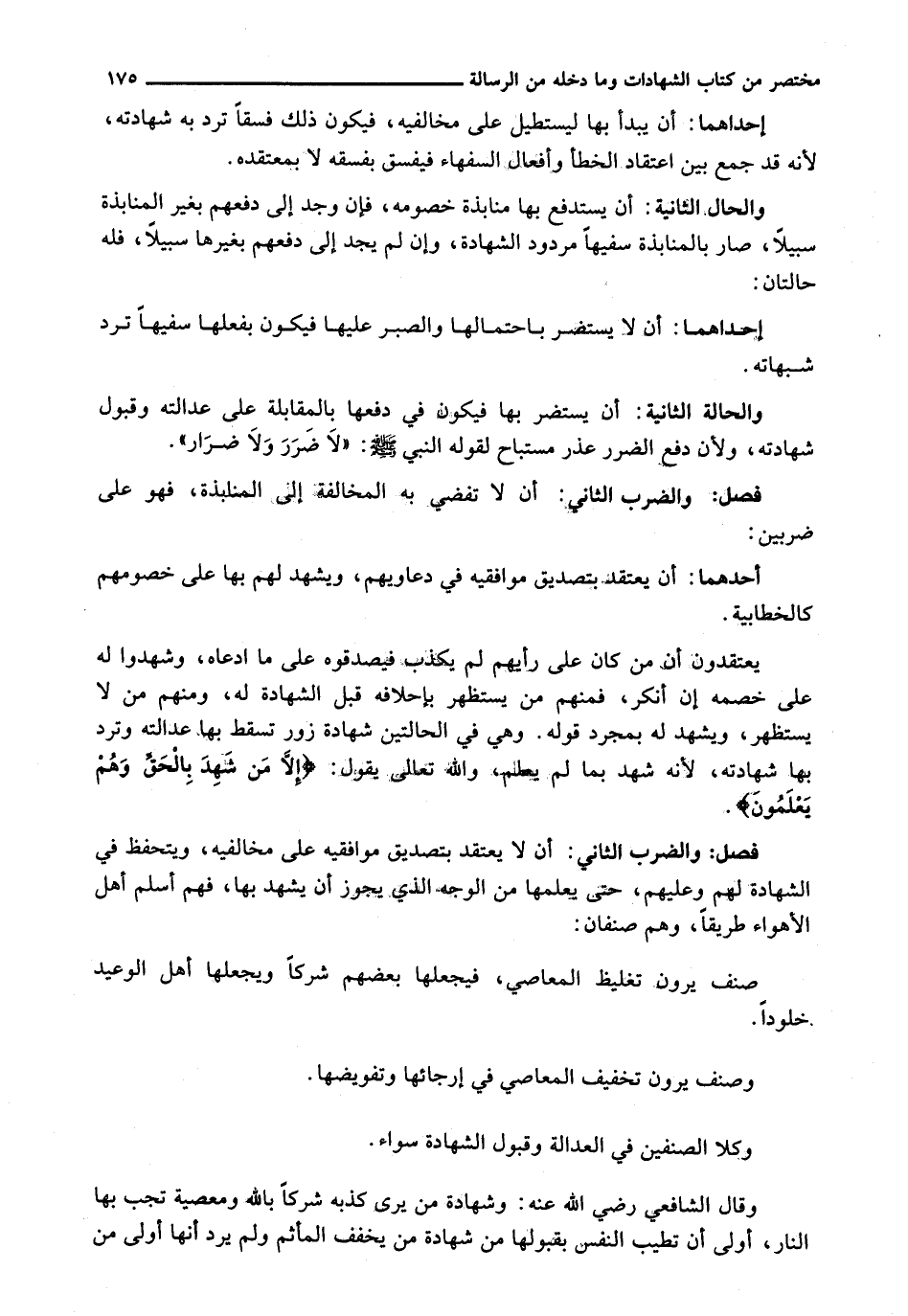 : وَالضَّرْبُ الثَّانِي: أَنْ لَا يَعْتَقِدَ بِتَصْدِيقِ مُوافِقِيهِ عَلَى مُخَالِفِيهِ، وَيَتَحَفَّظَ فِي الشَّهَادَةِ لَهُمْ وَعَلَيْهِمْ، حَتَّى يَعْلَمَهَا مِنَ الْوَجْهِ الَّذِي يَجُوزُ أَنْ يَشْهَدَ بِهَا، فَهُمْ أَسْلَمُ أَهْلِ الْأَهْوَاءِ طَرِيقًا، وَهُمْ صِنْفَانِ: