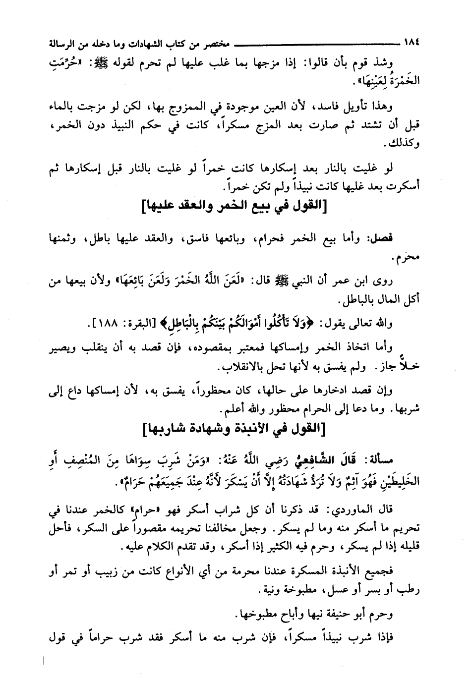 : قال الشافعي رضي الله عنه: " وَمَنْ شَرِبَ سِوَاهَا مِنَ الْمُنْصِفِ أَوِ الْخَلِيطَيْنِ فَهُوَ آثِمٌ وَلَا تُرَدُّ شَهَادَتُهُ إِلَّا أَنْ يَسْكَرَ لِأَنَّهُ عِنْدَ جَمِيَعِهِمْ حَرَامٌ ".