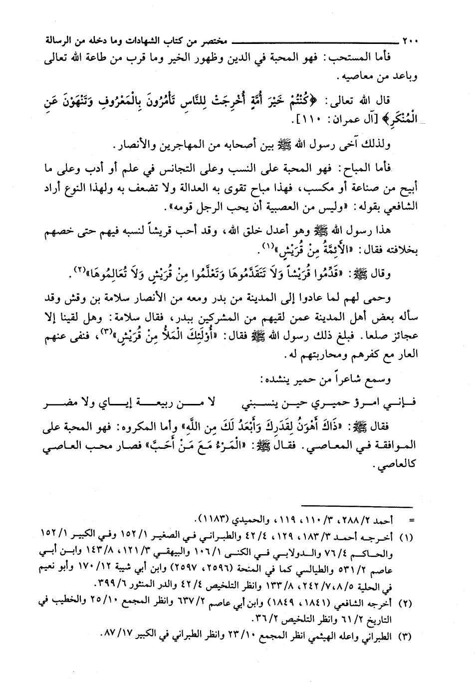 هَذَا رَسُولُ اللَّهِ - صَلَّى اللَّهُ عَلَيْهِ وَسَلَّم َ - وَهُوَ أَعْدَلُ خَلْقِ اللَّهِ، وَقَدْ أَحَبَّ قُرَيْشًا لِنَسَبِهِ فِيهِمْ حَتَّى خَصَّهُمْ بِخِلَافَتِهِ فَقَالَ: " الْأَئِمَّةُ مِنْ قُرَيْشٍ ".