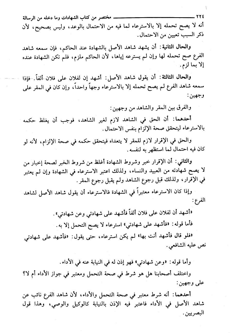 أَحَدُهُمَا: أَنَّ الْحَقَّ فِي الشَّاهِدِ لَازِمٌ لِغَيْرِ الشَّاهِدِ، فَوَجَبَ أَنْ يُغَلَّظَ حُكْمُهُ بِالِاسْتِرْعَاءِ لِيَتَحَقَّقَ صِحَّةُ الْإِلْزَامِ بِنَفْسِ الِاحْتِمَالِ.