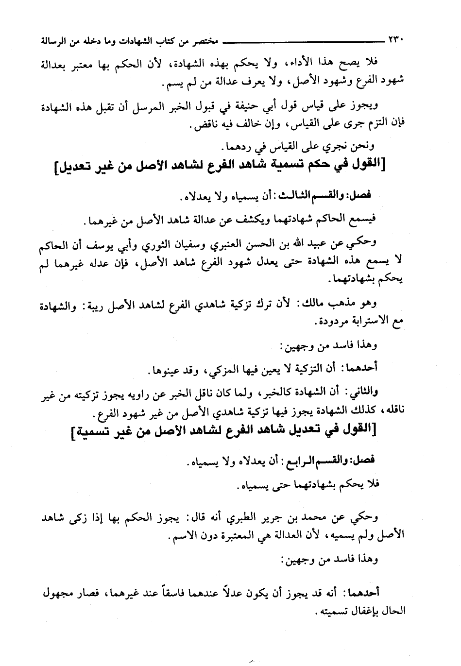 ( [الْقَوْلُ فِي حُكْمِ تَسْمِيَةِ شَاهِدِ الْفَرْعِ لِشَاهِدِ الْأَصْلِ مِنْ غَيْرِ تَعْدِيلٍ] )