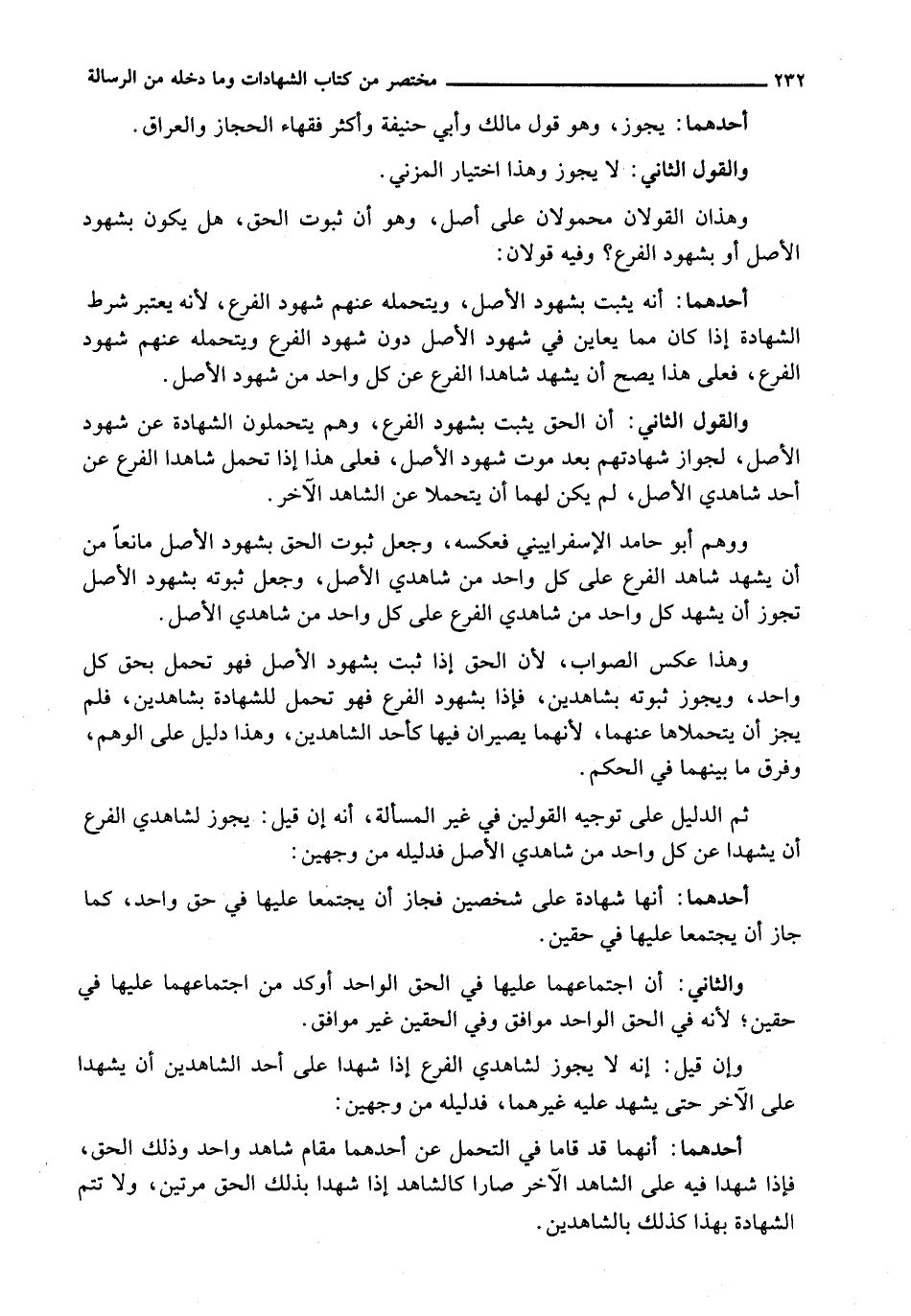 وَإِنْ قِيلَ: إِنَّهُ لَا يَجُوزُ لِشَاهِدَيِ الْفَرْعِ إِذَا شَهِدَا عَلَى أَحَدِ الشَّاهِدَيْنِ أَنْ يَشْهَدَا عَلَى الْآخَرِ حَتَّى يَشْهَدَ عَلَيْهِ غَيْرُهُمَا، فَدَلِيلُهُ مِنْ وَجْهَيْنِ: