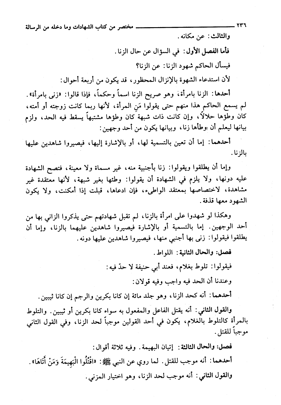 فَأَمَّا الْفَصْلُ الْأَوَّلُ: فِي السُّؤَالِ عَنْ حَالِ الزِّنَا.