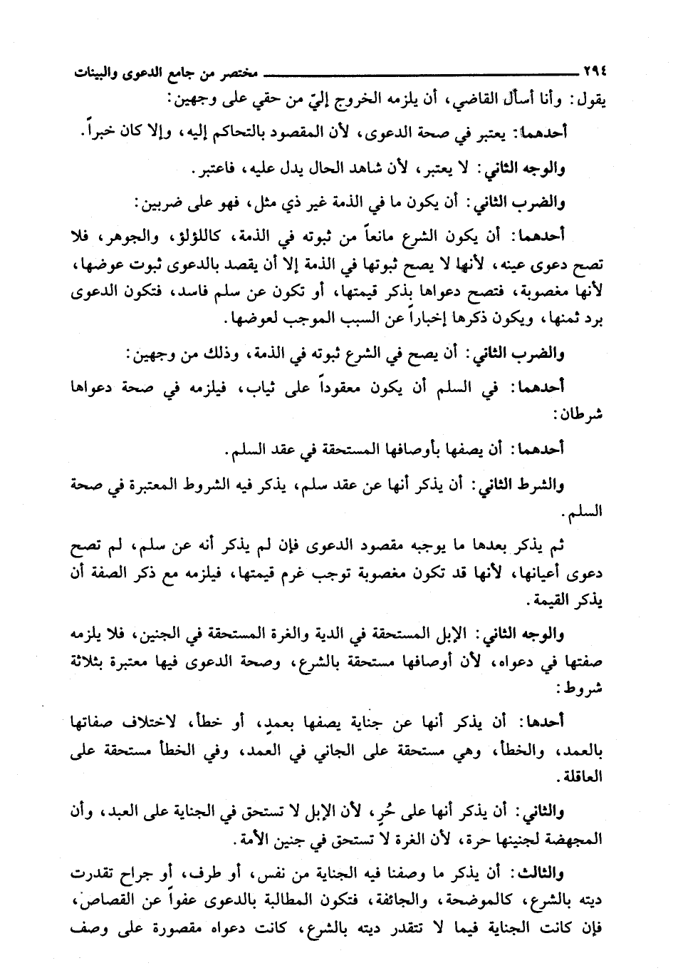 وَالْوَجْهُ الثَّانِي: الْإِبِلُ الْمُسْتَحَقَّةُ فِي الدِّيَةِ وَالْغُرَّةُ الْمُسْتَحَقَّةُ فِي الْجَنِينِ، فَلَا يَلْزَمْهُ صِفَتُهَا فِي دَعْوَاهُ، لِأَنَّ أَوْصَافَهَا مُسْتَحَقَّةٌ بِالشَّرْعِ، وَصِحَّةِ الدَّعْوَى فِيهَا مُعْتَبَرَةٌ بِثَلَاثَةِ شُرُوطٍ: