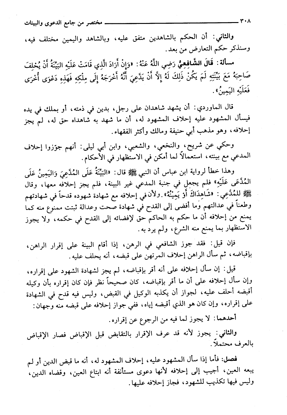 وَالثَّانِي: إِنَّ الْحُكْمَ بِالشَّاهِدَيْنِ مُتَّفَقٌ عَلَيْهِ، وَبِالشَّاهِدِ وَالْيَمِينِ مُخْتَلَفٌ فِيهِ، وَسَنَذْكُرُ حُكْمَ التَّعَارُضِ مِنْ بعد.