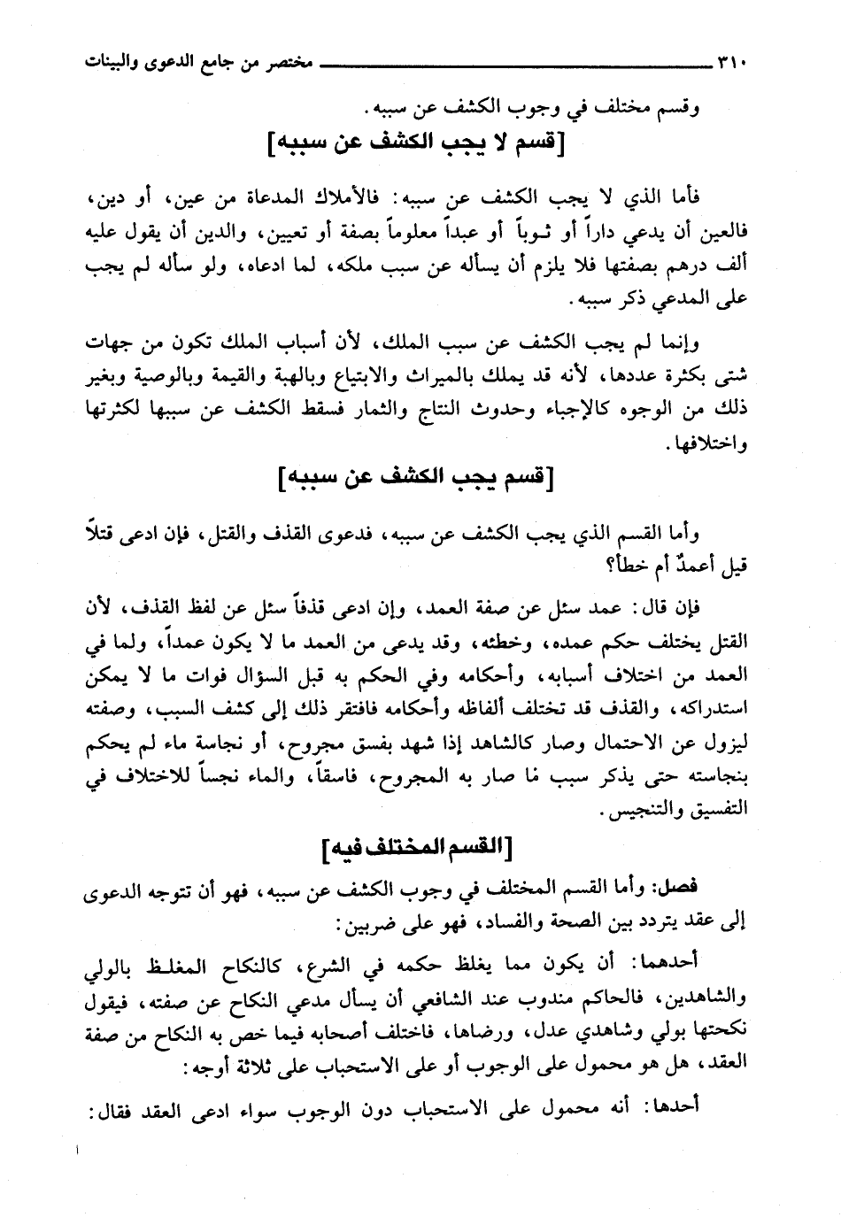 : وَأَمَّا الْقِسْمُ الْمُخْتَلَفُ فِي وُجُوبِ الْكَشْفِ عَنْ سَبَبِهِ، فَهُوَ أَنْ تَتَوَجَّهَ الدَّعْوَى إِلَى عَقْدٍ يَتَرَدَّدُ بَيْنَ الصِّحَّةِ وَالْفَسَادِ، فَهُوَ عَلَى ضَرْبَيْنِ: