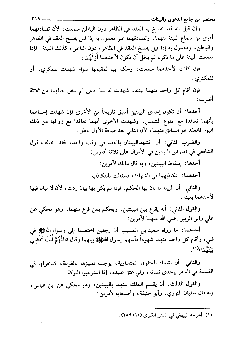 وَالثَّانِي: إِنَّ الْبَيِّنَةَ مَا بَانَ بِهَا الْحُكْمُ، فَإِذَا لَمْ يَكُنْ بِهَا بَيَانٌ رُدَّتْ، لِأَنَّ لَا بَيَانَ فِيهَا لِأَحَدِهِمَا بِعَيْنِهِ.